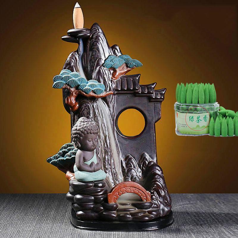 Crafted from high-quality ceramic, this incense burner showcases a stunning smoke waterfall effect that creates a calming atmosphere. The intricate pine decoration not only enhances its beauty but also serves as a charming decorative ornament, fitting seamlessly into any room's decor.