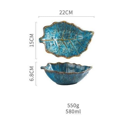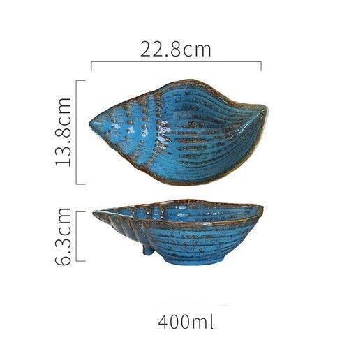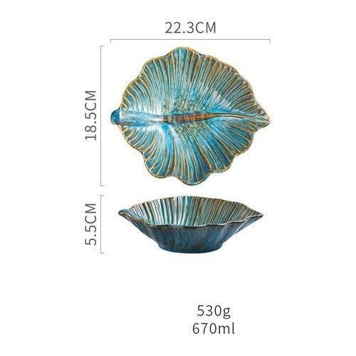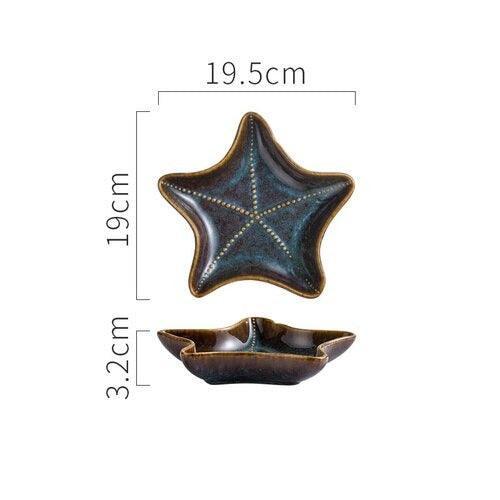 Japanese Retro Ocean and Botanical Ceramic Plates - Irregular Shapes for Elegant Dining Experience