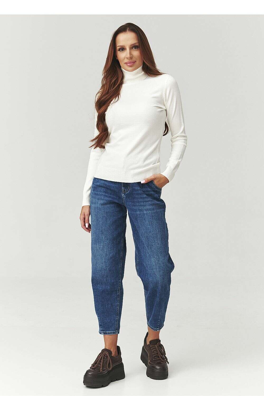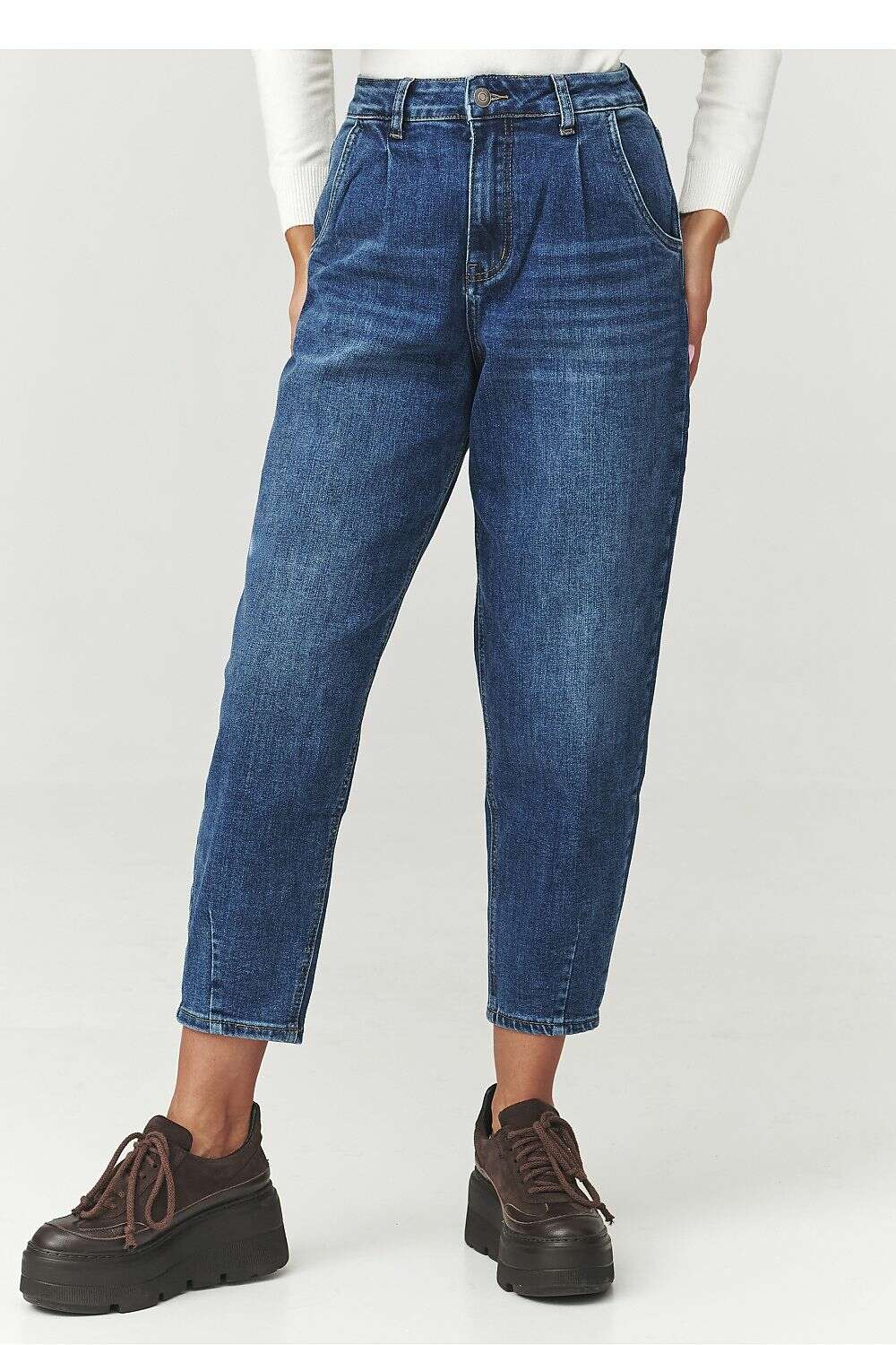High Waisted Navy Mom Fit Jeans for Women offer all-day comfort and timeless style in a rich navy hue. Crafted from premium denim, they blend durability with everyday softness. The high-rise waist visually elongates the legs and defines the silhouette, while the relaxed, slightly tapered mom fit allows freedom of movement. The 7/8 length adds a light, contemporary touch, making them easy to pair with a fitted turtleneck or a loose shirt. Made in Italy, these jeans stand out for quality craftsmanship and enduring style.