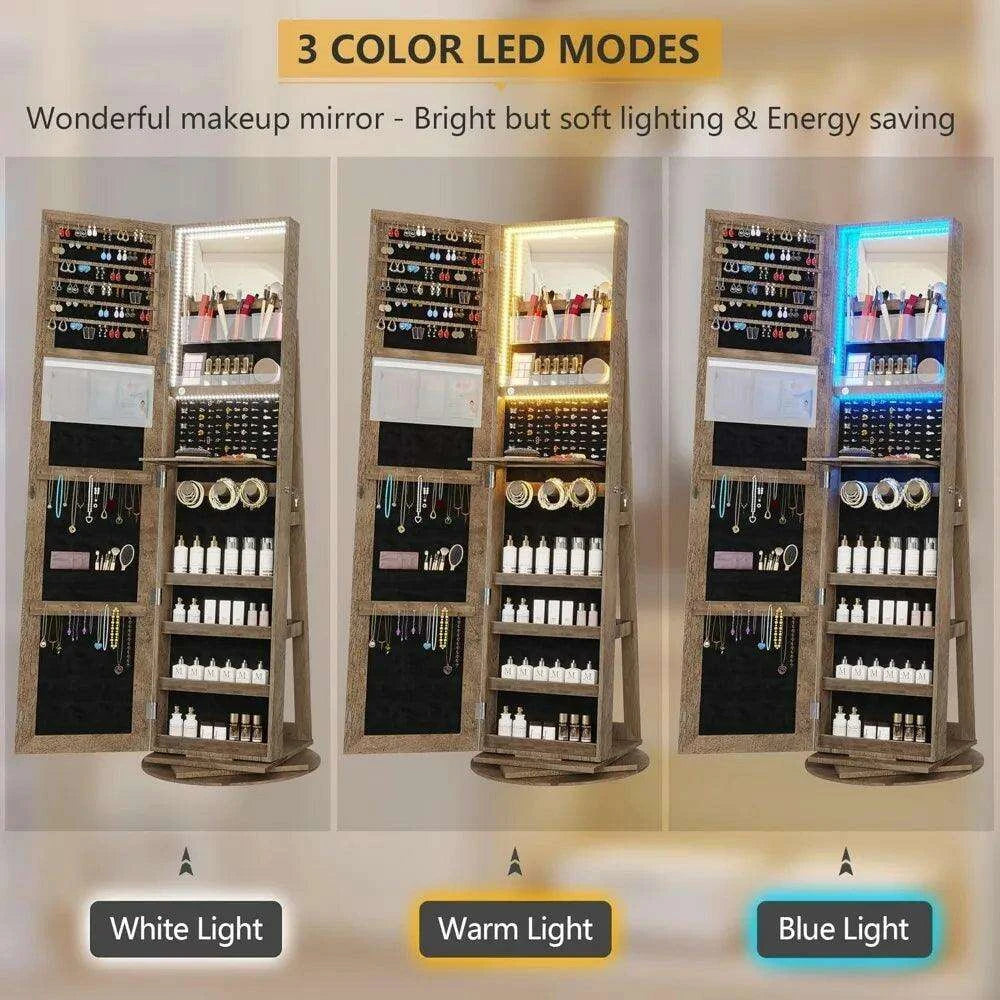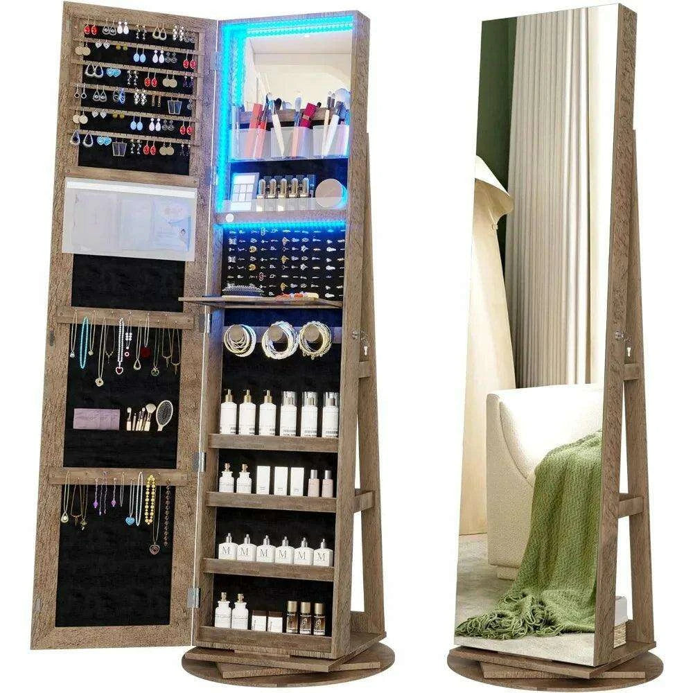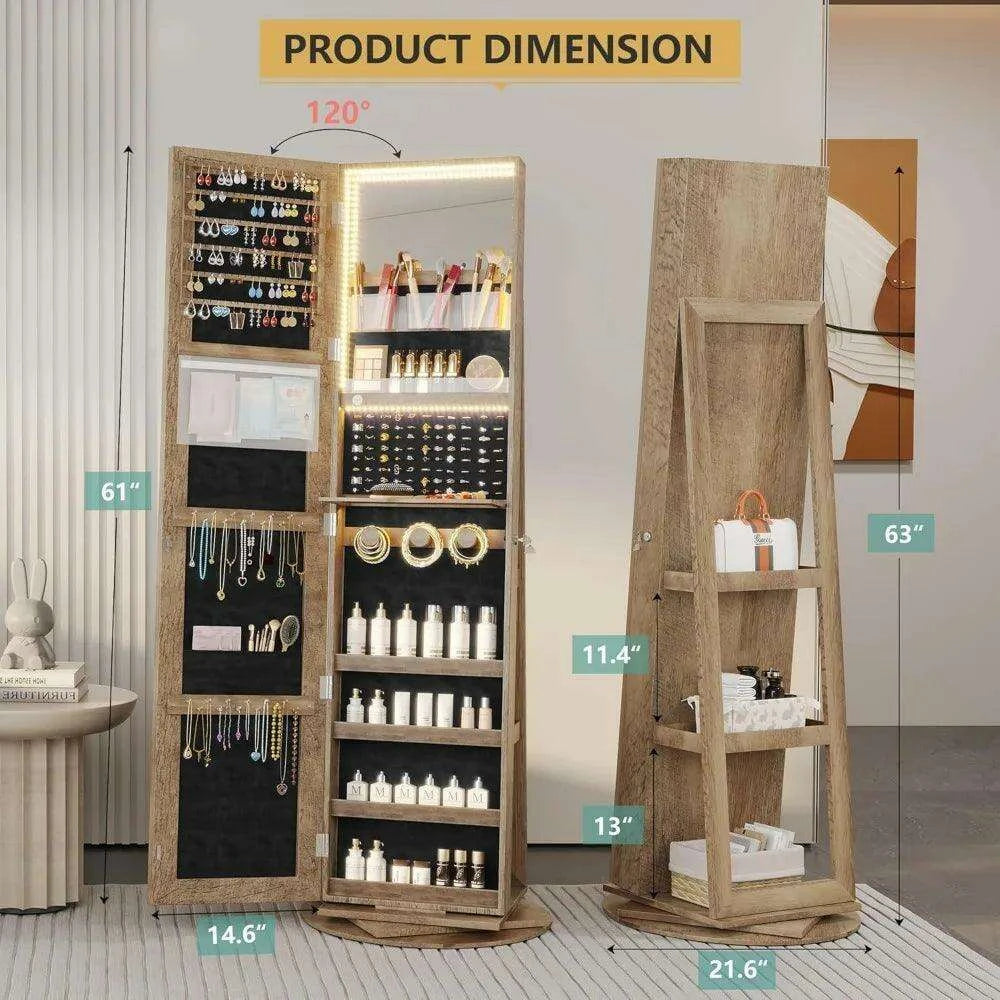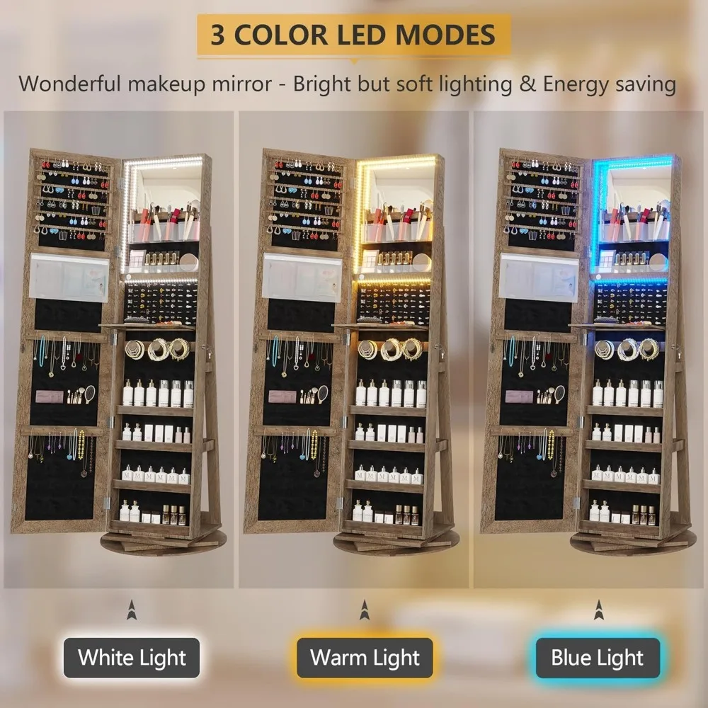 Jewelry Armoire with Full Length Mirror and 360° Rotation