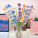 Delightful Handcrafted Milk Cotton Flower Arrangement with Tulips, Daisies, and Bellflowers
