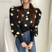 Chic Korean Sweater with Playful Polka Dot Puff Sleeves - Cozy Elegance Redefined