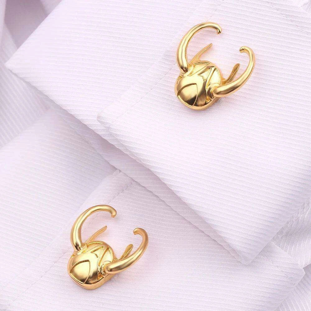 Elegant Loki Helmet Cufflinks: A Bold Men's Accessory with a Hint of Deception