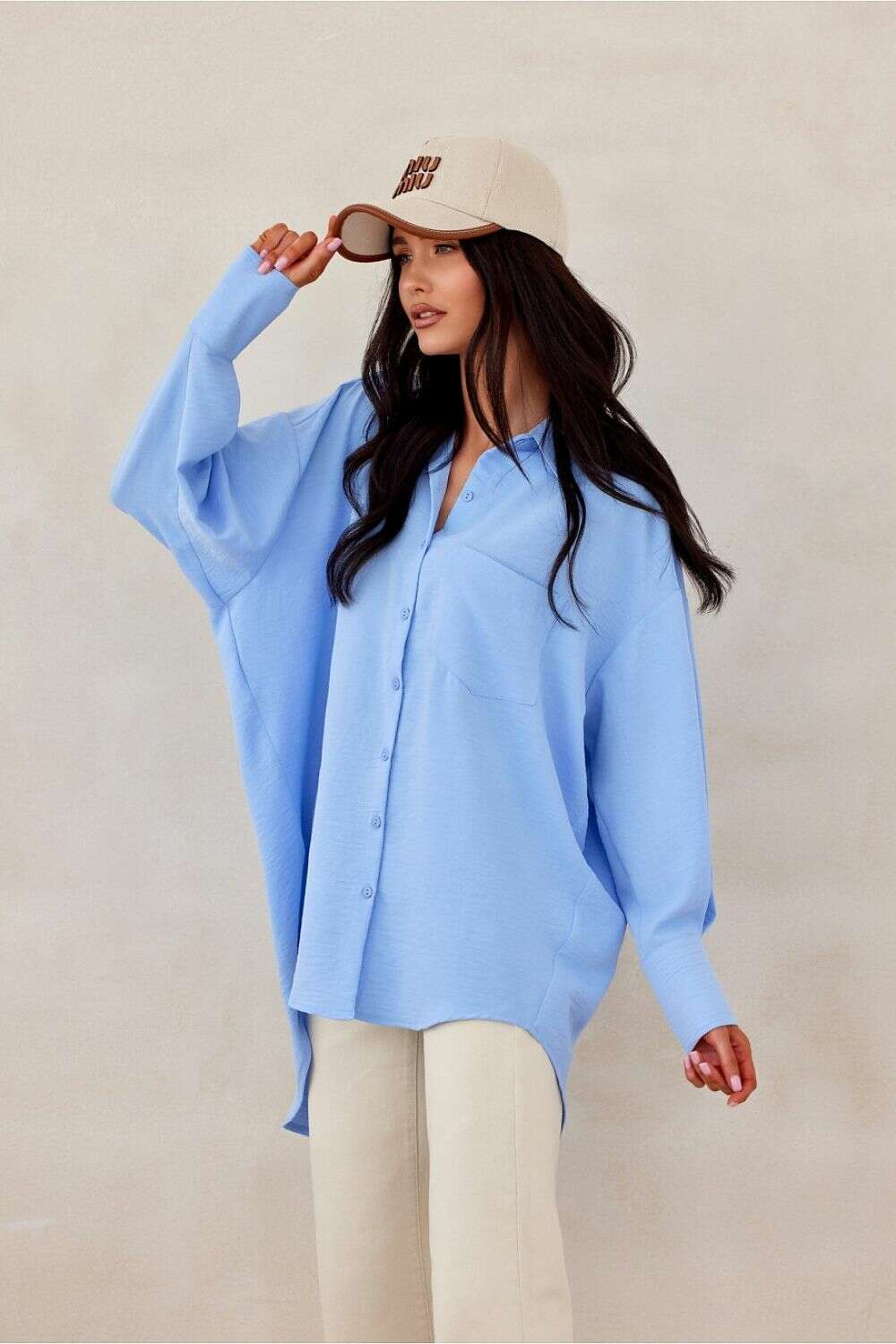Discover comfort and elegance with our asymmetrical oversize cut women's shirt. This unique shirt is distinguished by its buff, long sleeves finished with cuffs, which add an unusual touch. Fastened at the front with buttons, it makes it easy to put on and wear. The longer back of the shirt introduces an element of casualness and relaxed style, making it the perfect choice for any occasion. A cute pocket on the front adds character, while the classic collar introduces a touch of classics. Find out how easy it is to combine comfort and a fashionable look. It pairs perfectly with jeans or waxed pants, making it a versatile choice for many occasions ? from daily chores to meetings with friends. It can be worn with both classic stilettos and sporty footwear, giving you plenty of styling options. Regardless of your size, this shirt is sure to make you feel attractive and comfortable. It is a must-have in every closet! The product is made and sewn in Poland.