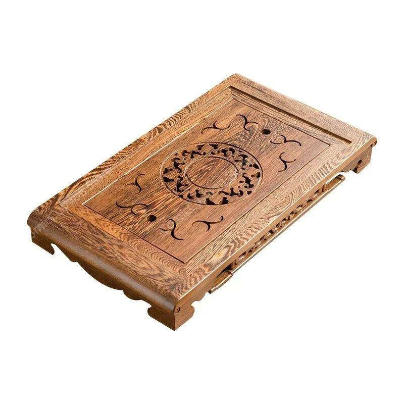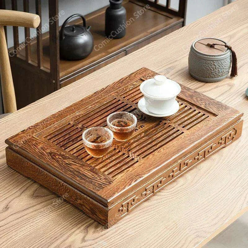 Luxurious Rosewood Tea Serving Tray with Convenient Storage Drawer - Stylish Wooden Table for Home Use