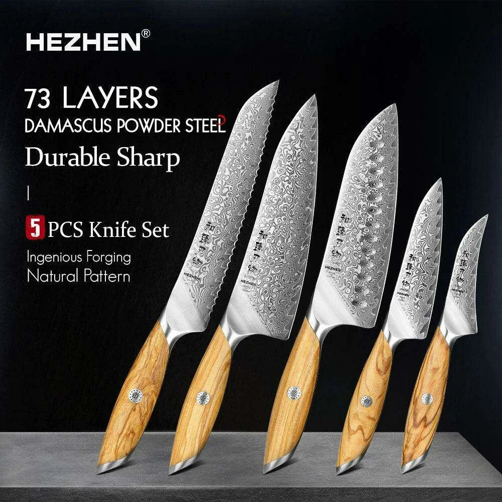 Luxury 73-Layer Damascus Steel Chef's Knife Set with Olive Wood Handles - Ideal for Gifting- Très Elite- Très Elite