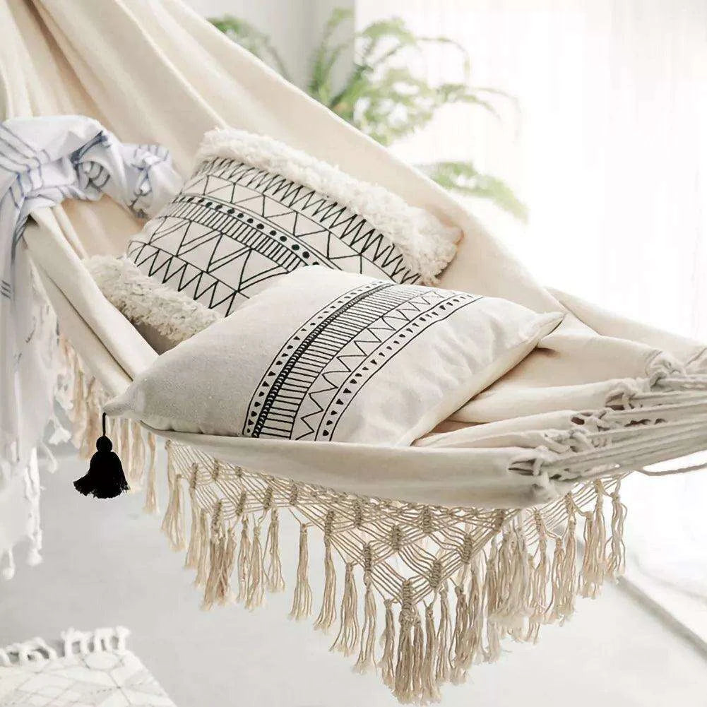 Bohemian Bliss Double Hammock with Macrame Detailing - Your Personal Relaxation Retreat