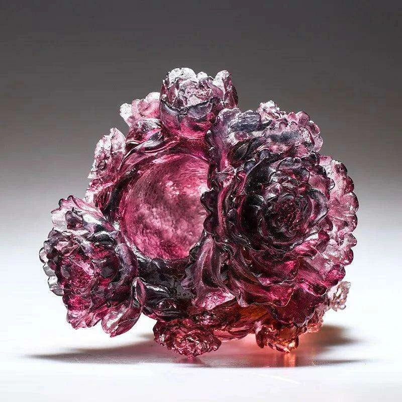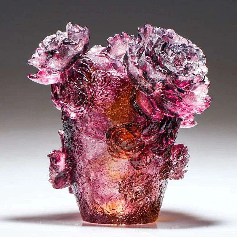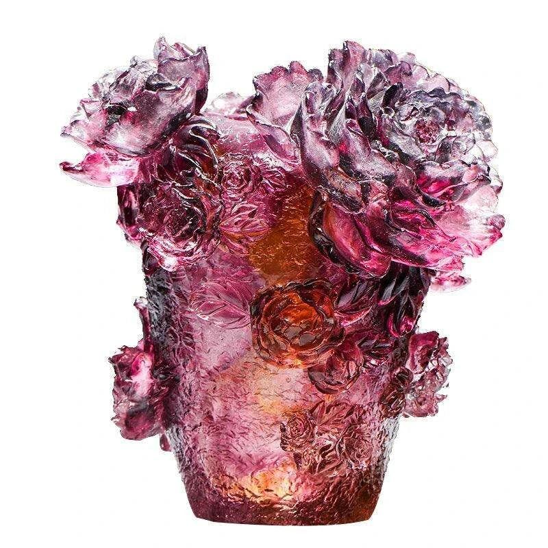 Majestic Noble Purple Tree Peony Glass Vase - Premium Colored Glaze Decor