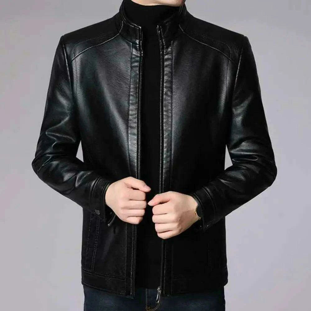 Men's Stylish Faux Leather Biker Jacket - Warm and Windproof Outerwear