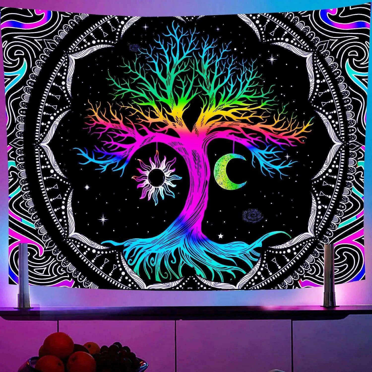 Transform your living space into a spine-chilling spectacle with our Vibrant UV Reactive Neon Skull Tapestry Set. This stunning tapestry captures the spirit of Halloween while enhancing the ambiance of any room with its vibrant UV reactive design.