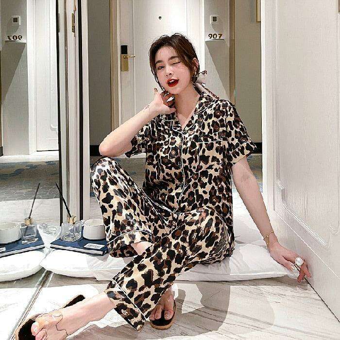 Luxurious Leopard Print Satin Pajama Set for Women - Indulge in Comfort and Style
