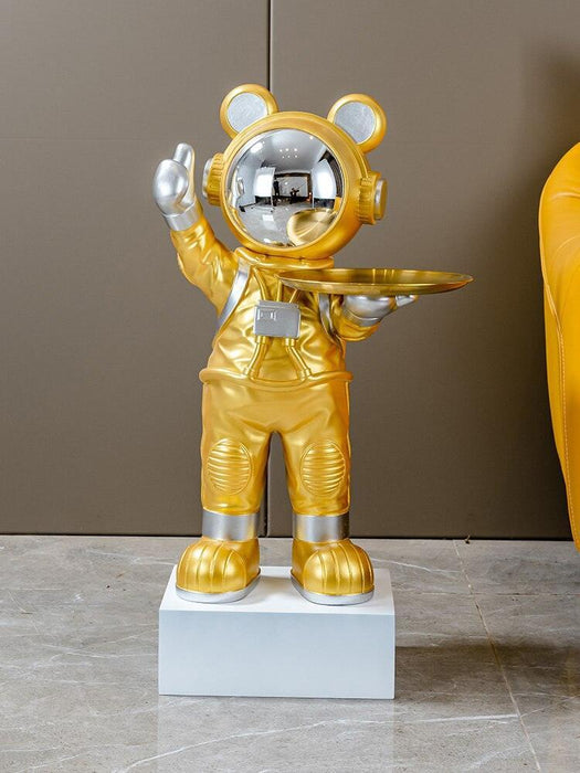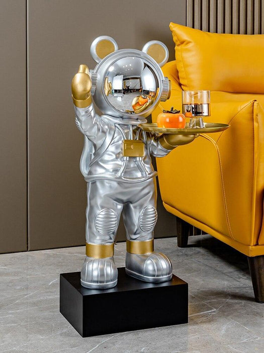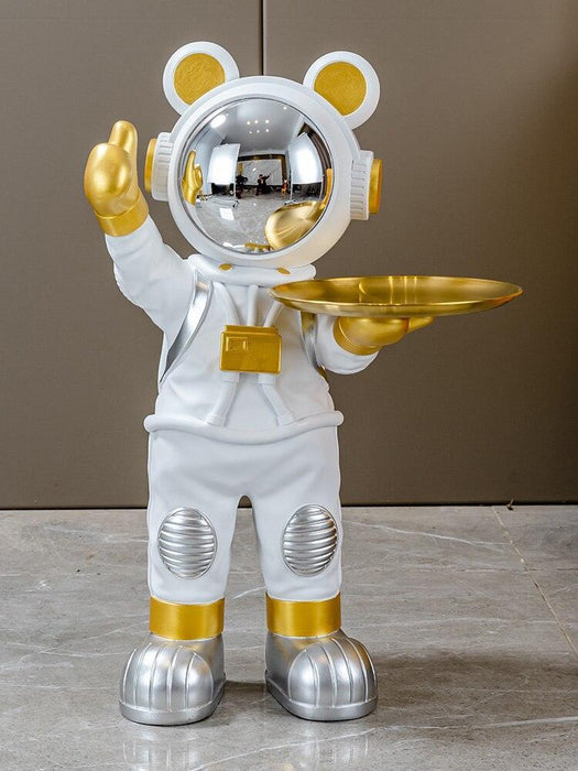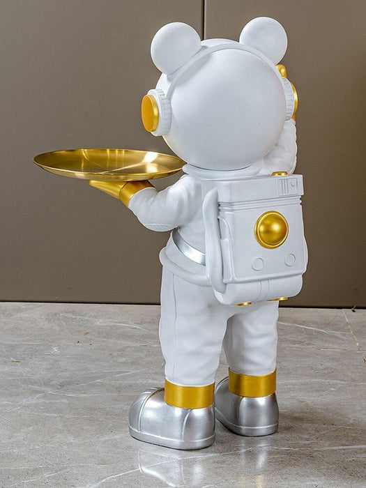 Chic Nordic Astronaut Floor Sculpture with Functional Key Organizer Tray for Elegant Home Decor