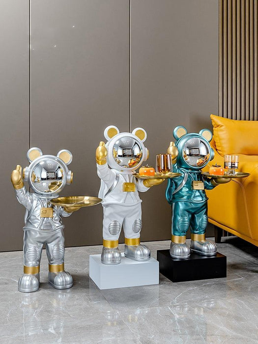 Astronaut-Inspired Nordic Floor Sculpture with Key Organizer Tray for Chic Home Decor