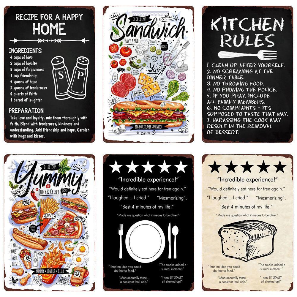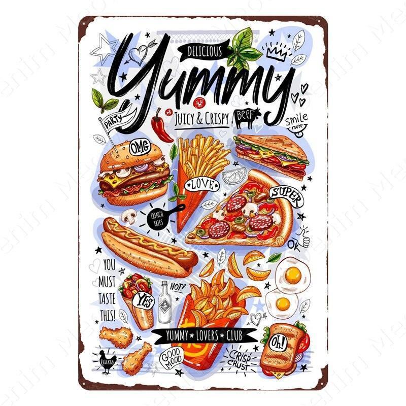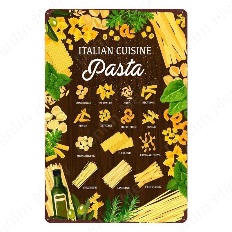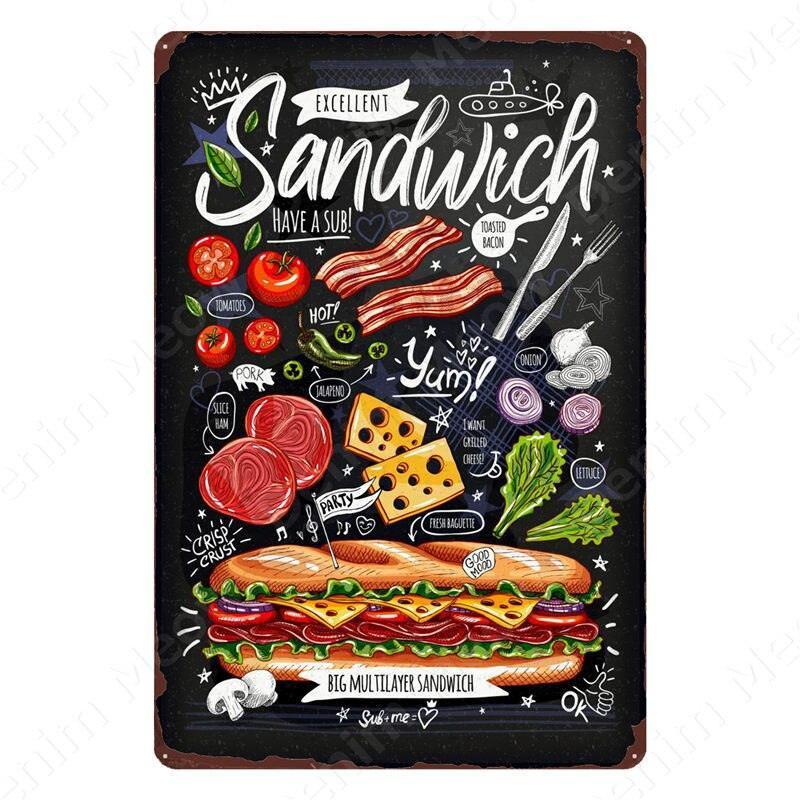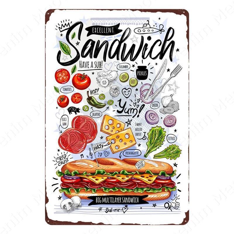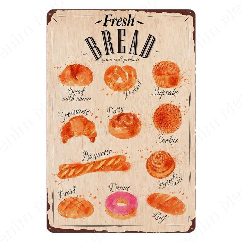 Nostalgic Retro Metal Sign for Kitchen - Pasta, Sandwich, and Fresh Bread Wall Art