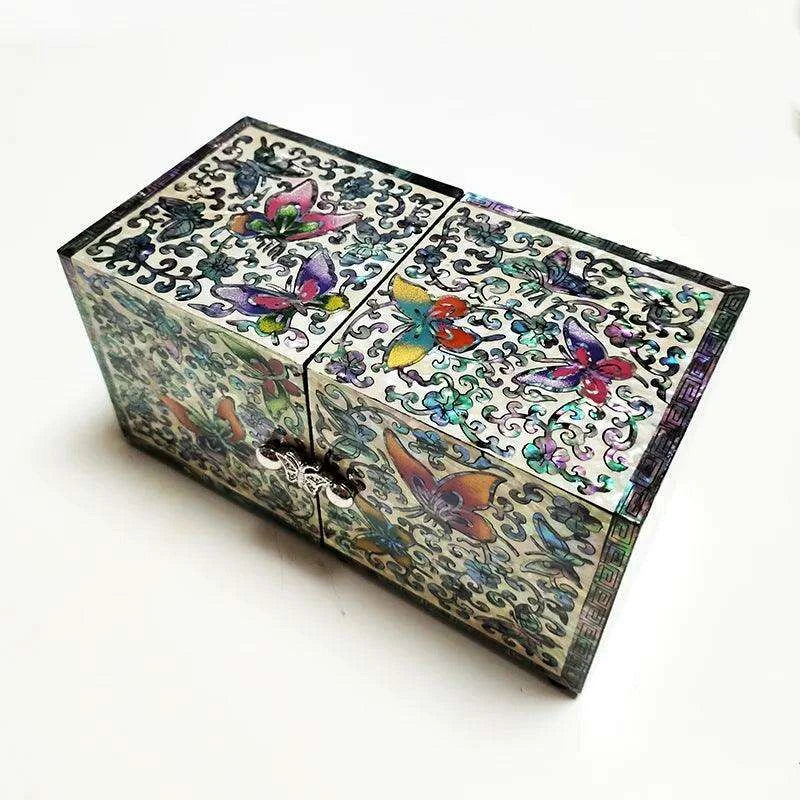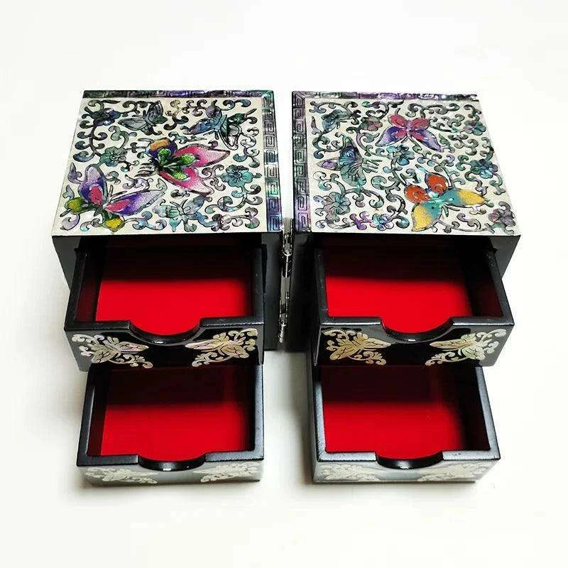 Elegant Butterfly and Peony Mother of Pearl Jewelry Organizer with 4 Drawers