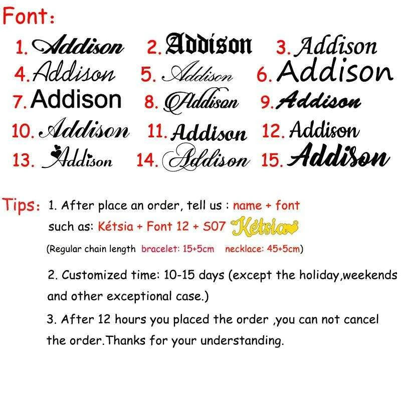 - Customizable Design: Personalize your necklace with any name you desire. Choose your favorite font and provide the details after placing your order!