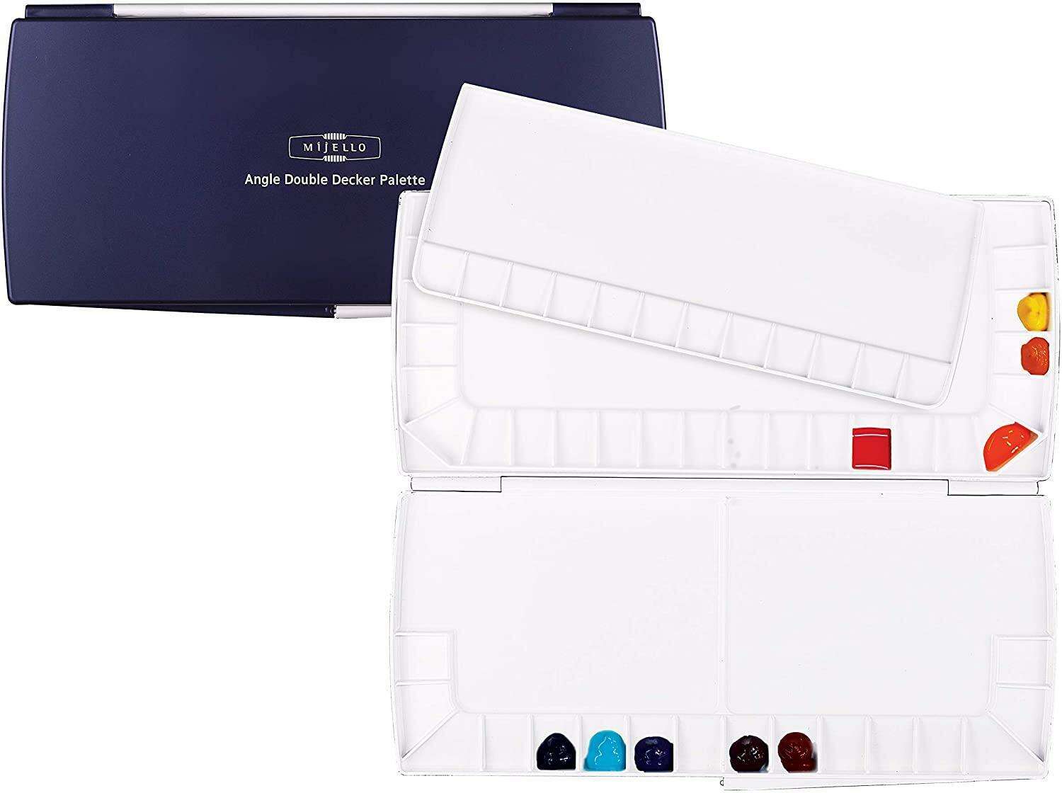 Compact Blue Triple Tier Watercolor Palette - 52 Wells for Artists