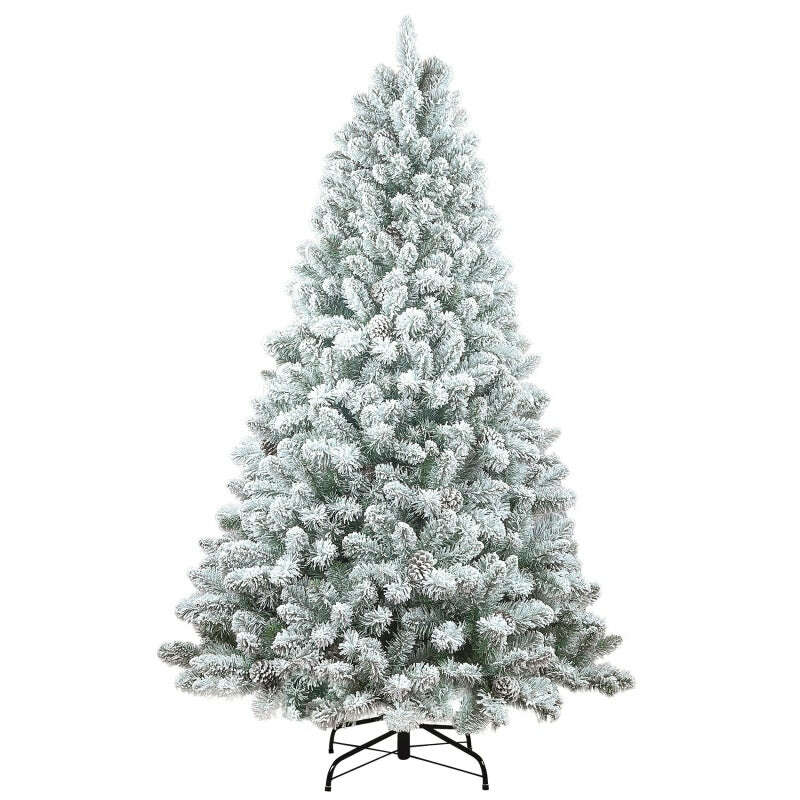 Crafted to maintain fullness and resist crushing, this flocked Christmas tree stays vibrant season after season. The combination of pine cones and abundant tips creates depth, texture, and a natural conifer feel that outshines standard artificial trees. Perfect for living rooms, entryways, or festive storefronts, it pairs beautifully with ornaments, lights, and garlands to create a warm, inviting holiday scene.