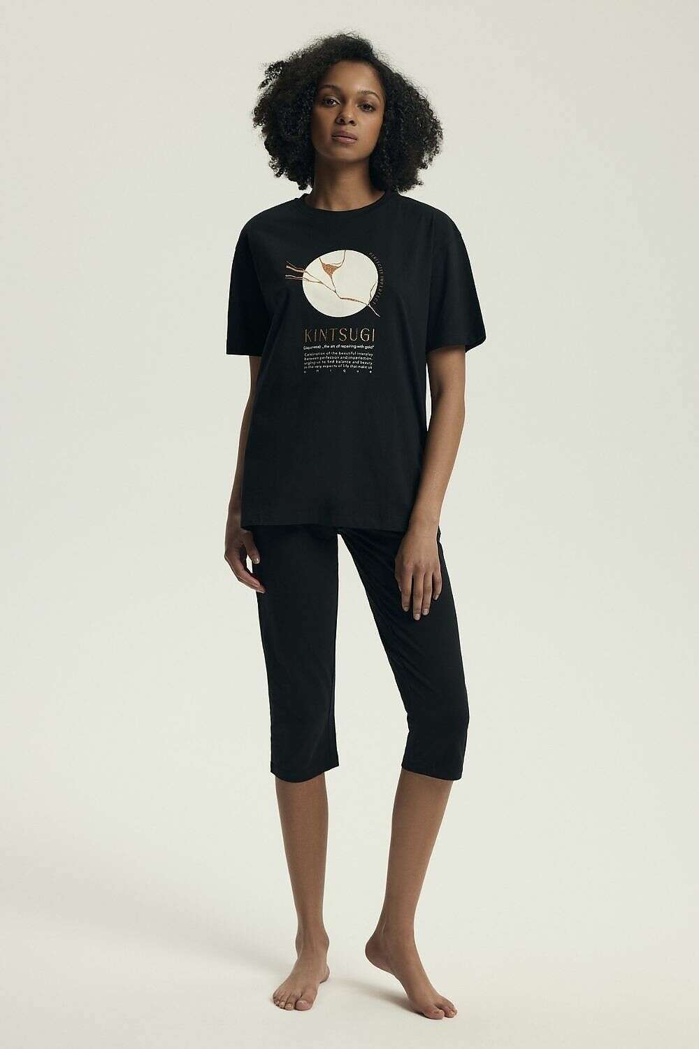 Women's Printed Cotton Pajama Set – Soft Short Sleeve Top & Slim Pants