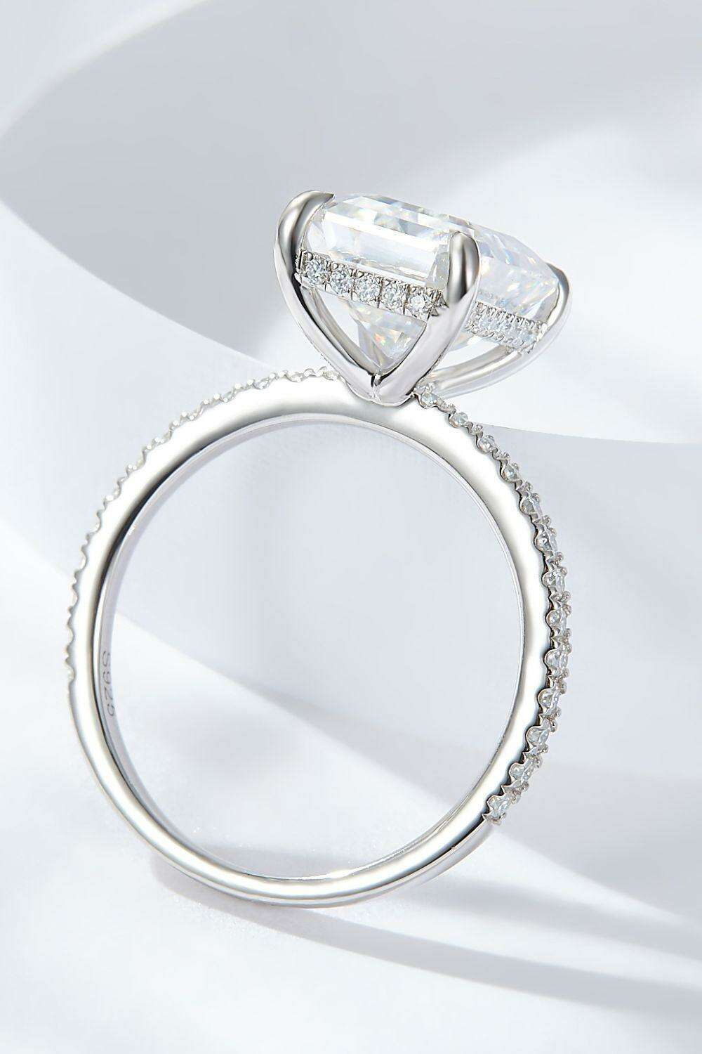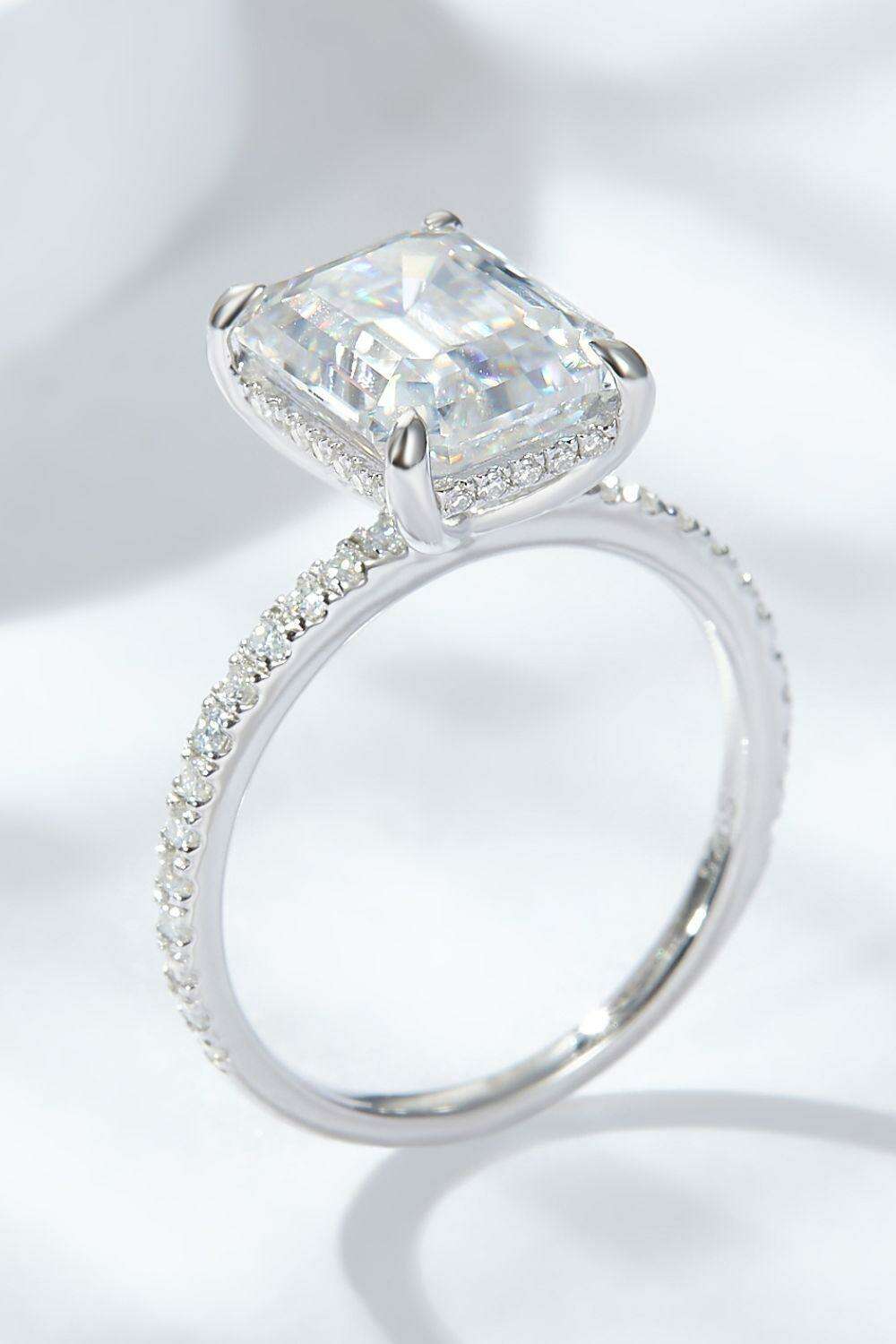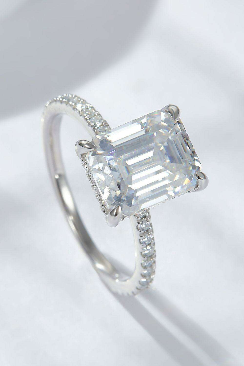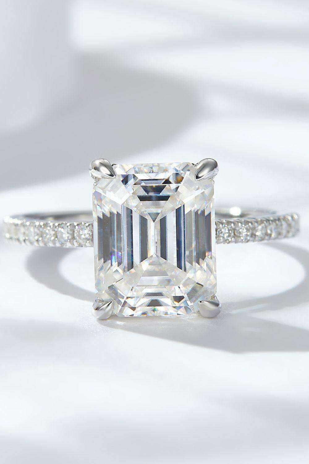 - Dazzling Centerpiece: Captivating 4 carat emerald cut lab-grown diamond center stone that draws attention.