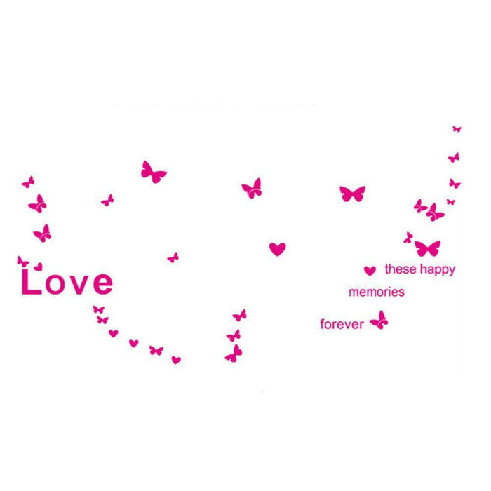 Transform your living space into a charming retreat with our Enchanting Butterfly and Heart PVC Wall Sticker Set. This delightful wall decal features a whimsical blend of butterflies, love hearts, and playful letters, adding a touch of magic to any room.