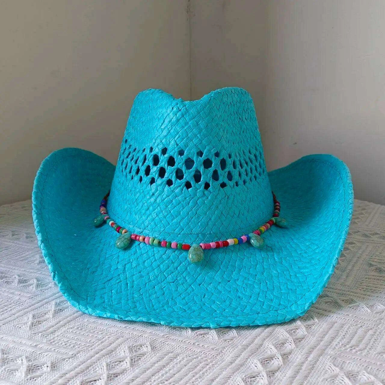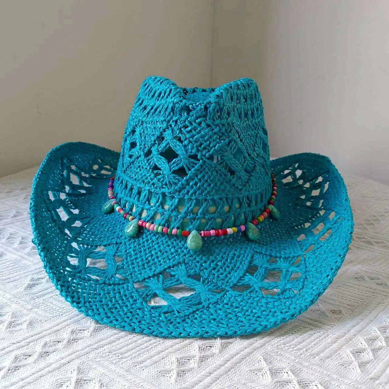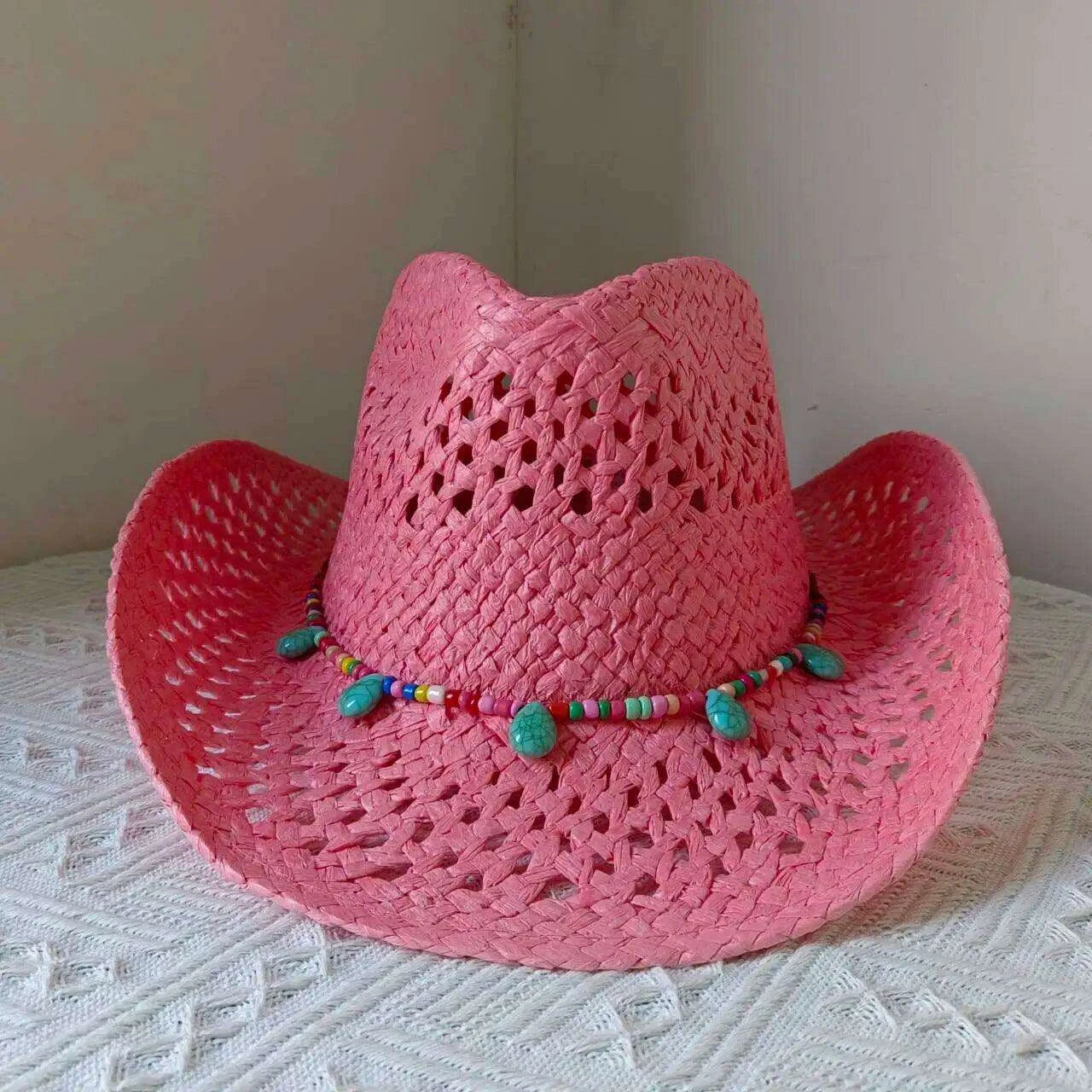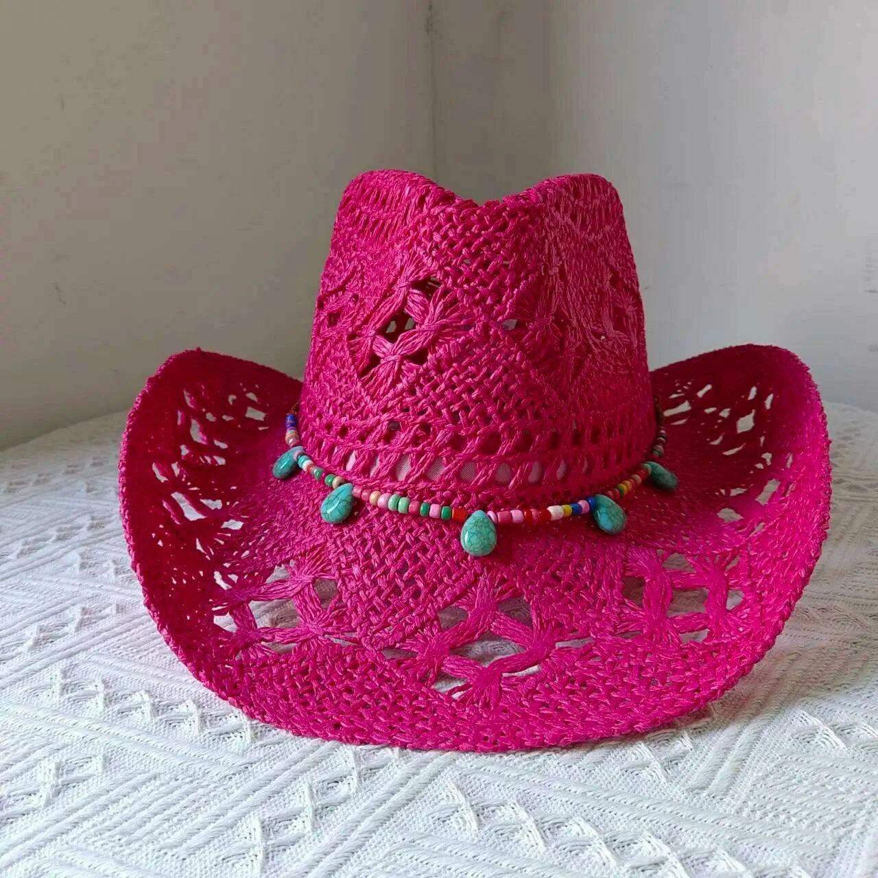 Rose Red Cowboy Straw Hat - Adjustable Wide Brim Sun Hat for All Seasons