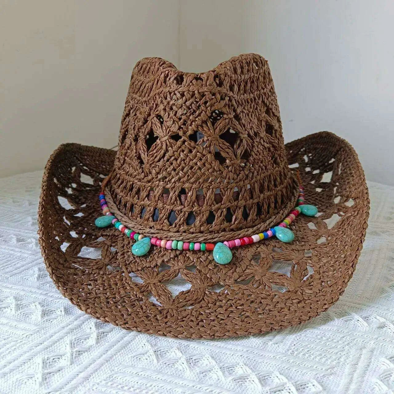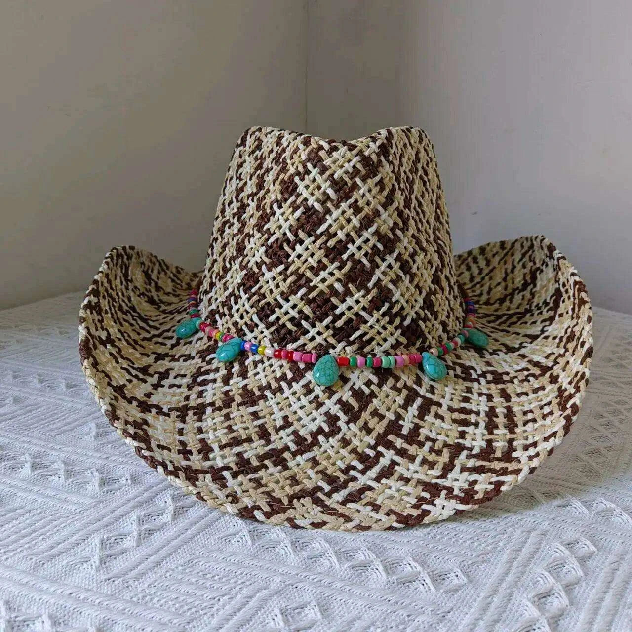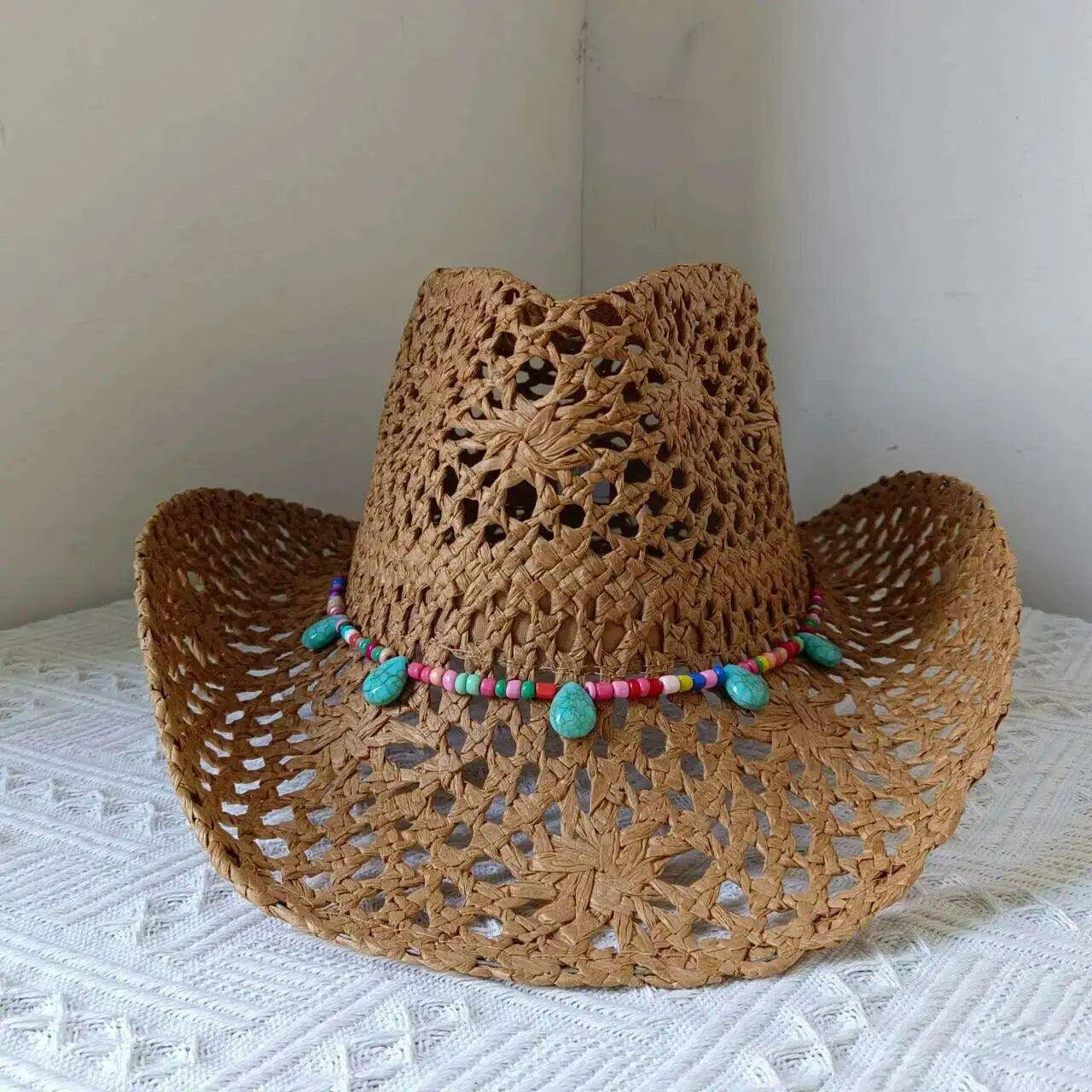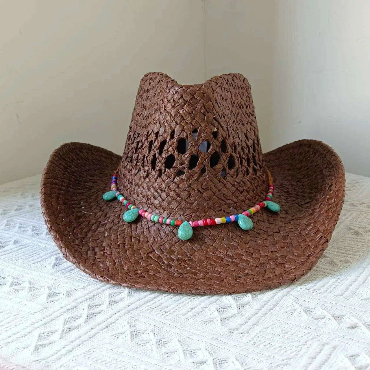 Rose Red Cowboy Straw Hat - Adjustable Wide Brim Sun Hat for All Seasons