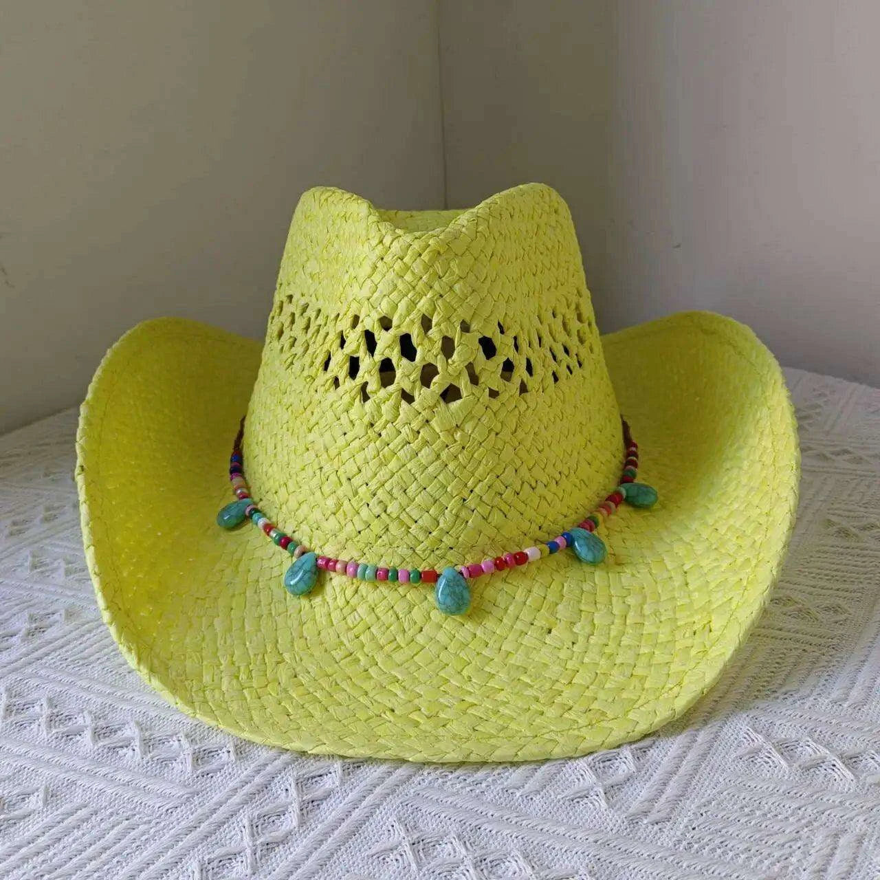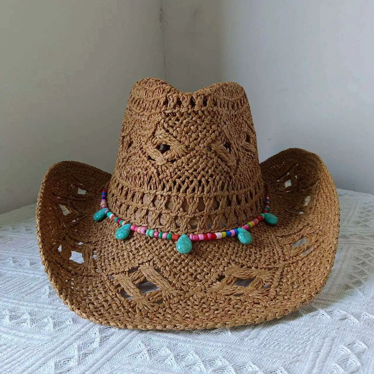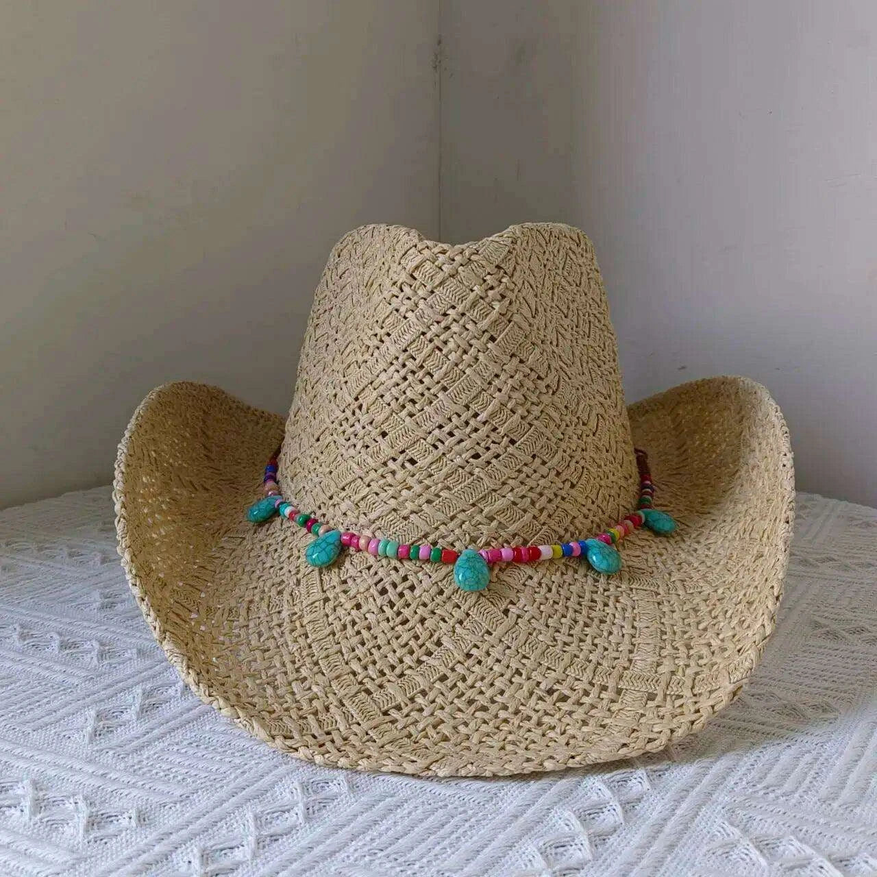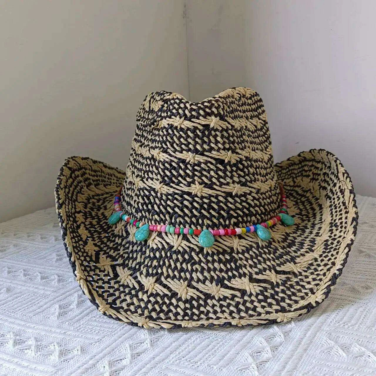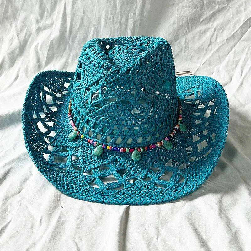 Rose Red Cowboy Straw Hat - Adjustable Wide Brim Sun Hat for All Seasons