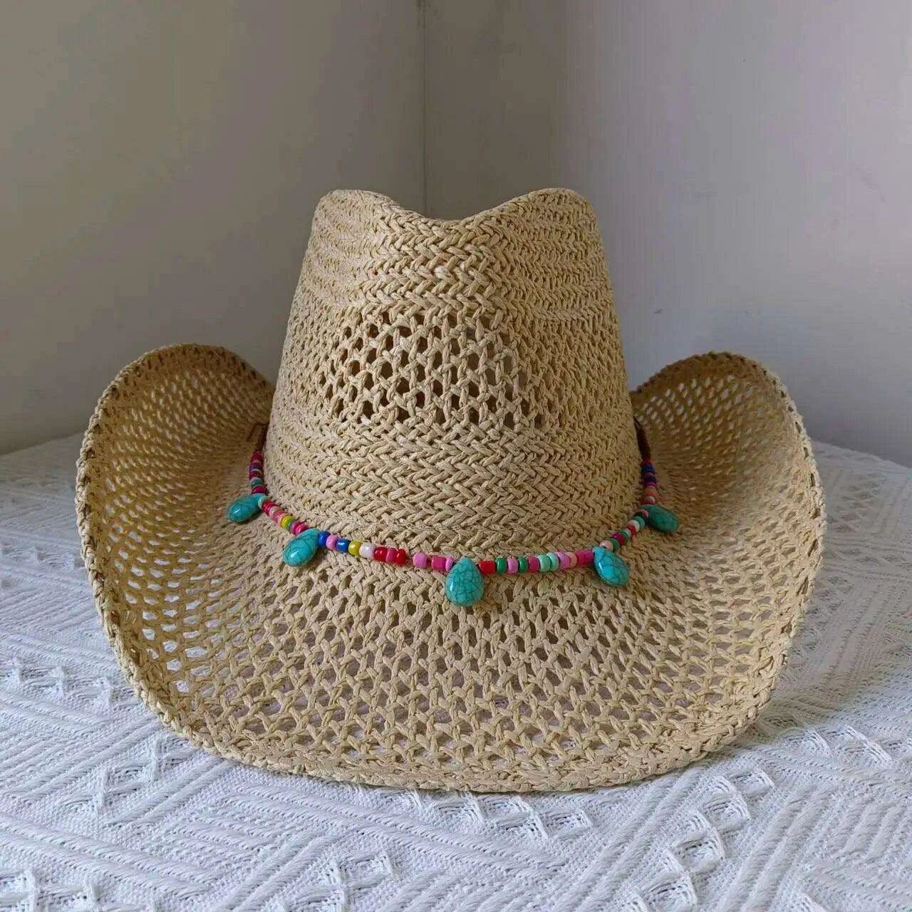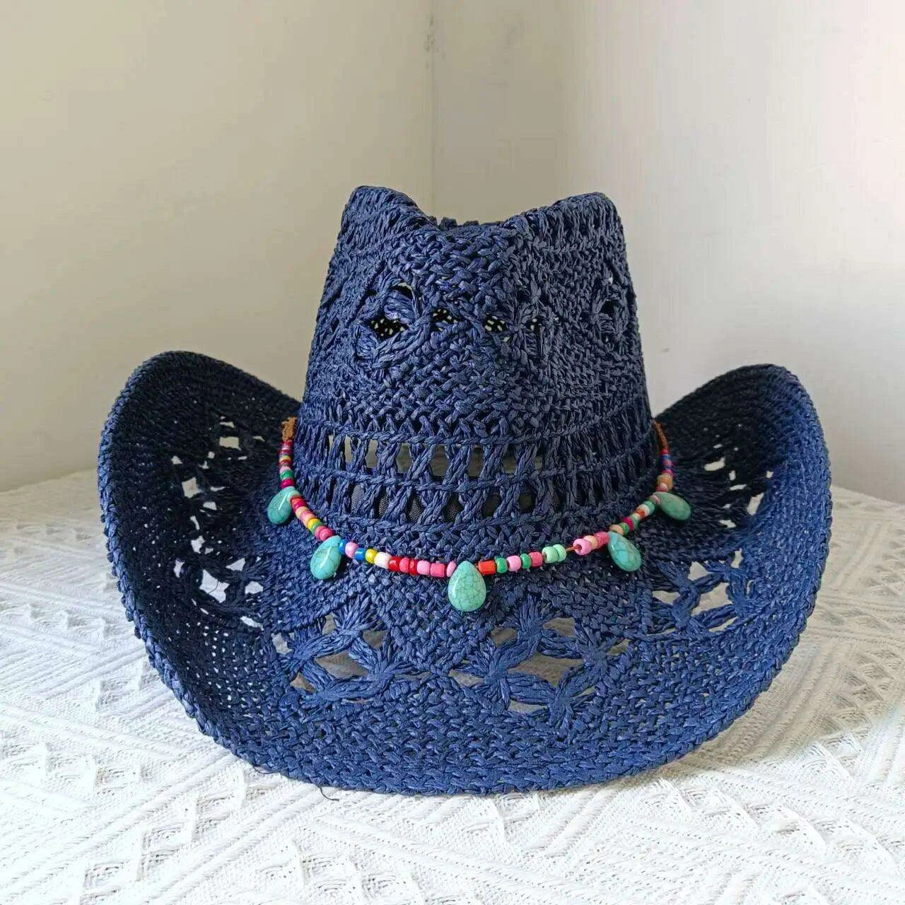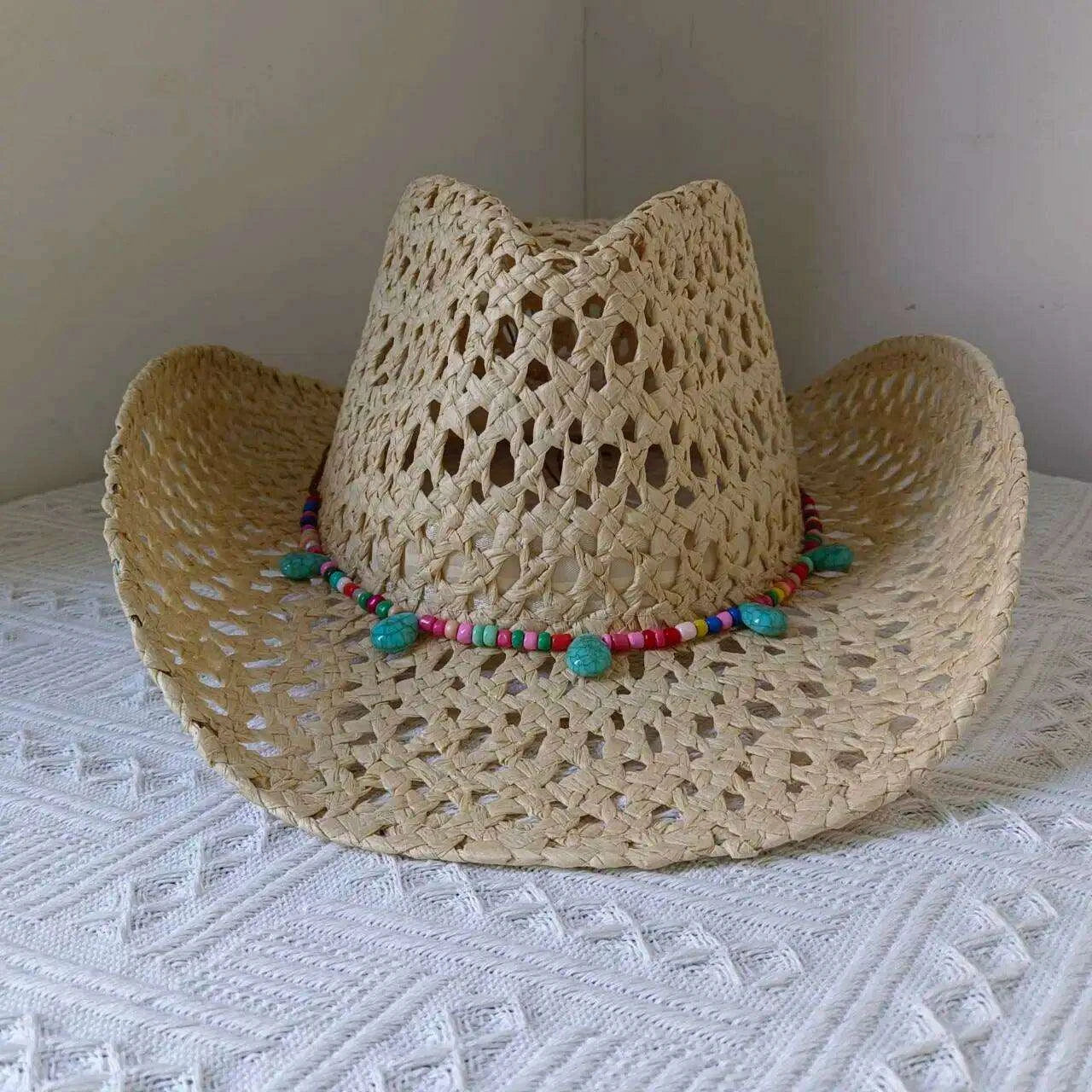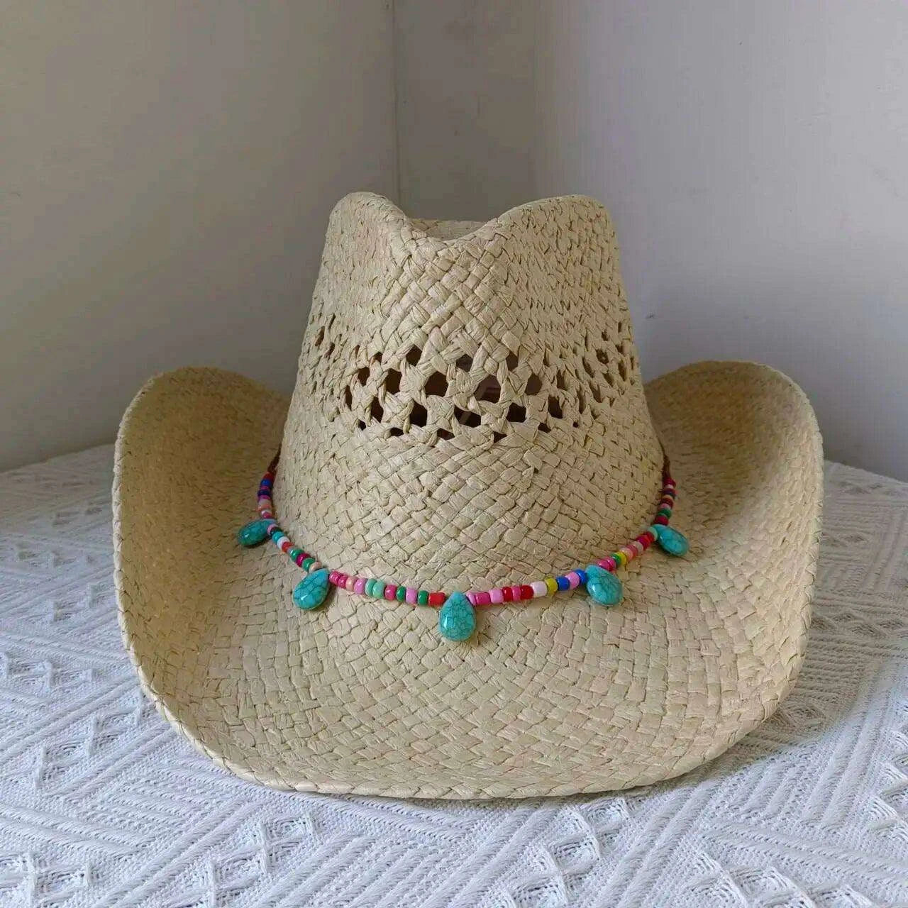 Rose Red Cowboy Straw Hat - Adjustable Wide Brim Sun Hat for All Seasons