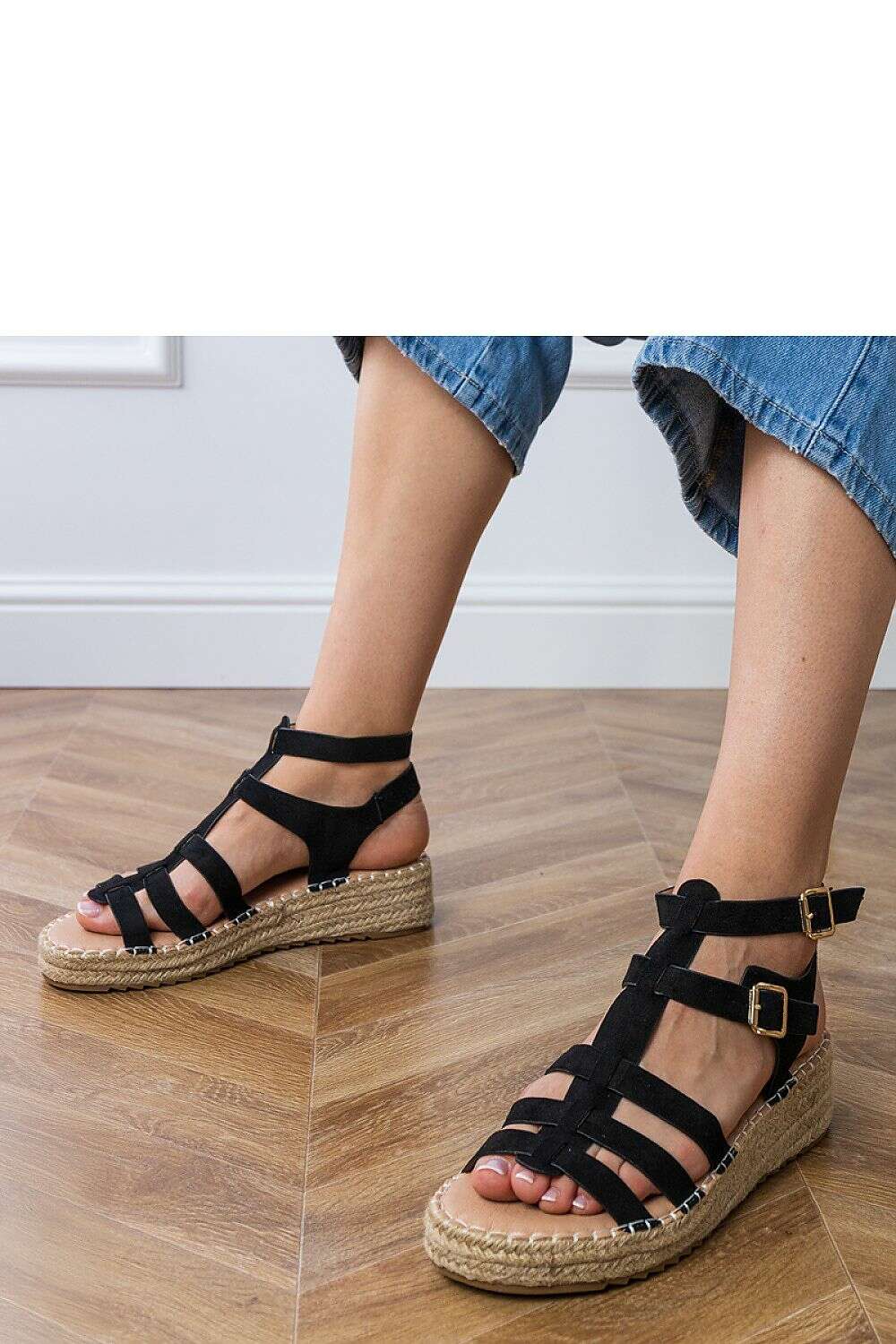 Stylish espadrille sandals are the perfect combination of comfort and summer relaxation with a feminine touch. Made of soft, eco-friendly suede leather, they delight with a pleasant texture and natural appearance. The classic buckle closure allows for a perfect fit to the foot. The sandals are set on a stable 4.5 cm platform that adds a few centimeters of height without sacrificing comfort. The eco-leather insole provides comfort during all-day wear. It is an excellent choice for warm days, both for a city stroll and for holiday trips. The espadrille style brings a summery atmosphere and pairs perfectly with dresses, shorts, or flowing pants.