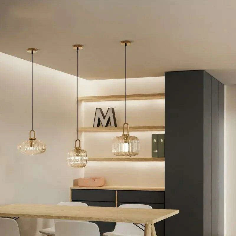 Modern Scandinavian Glass LED Pendant Lanterns - Japanese-Inspired Lighting for Dining, Kitchen, and Bedroom Spaces