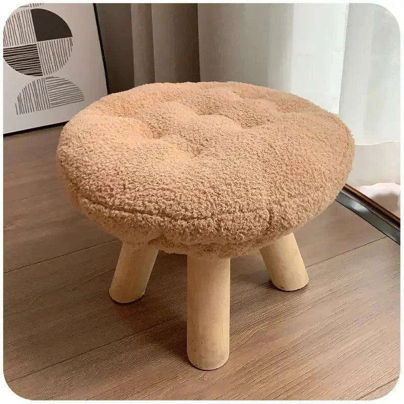 Nordic Round Wooden Pouf Stool with Washable Cover