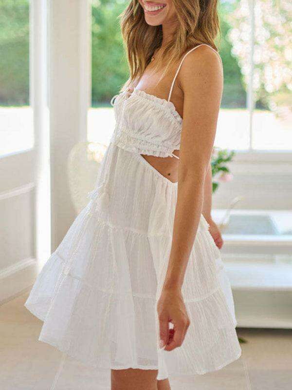 Enchanting Lace Hollow Backless Dress with Swing Silhouette for Women
