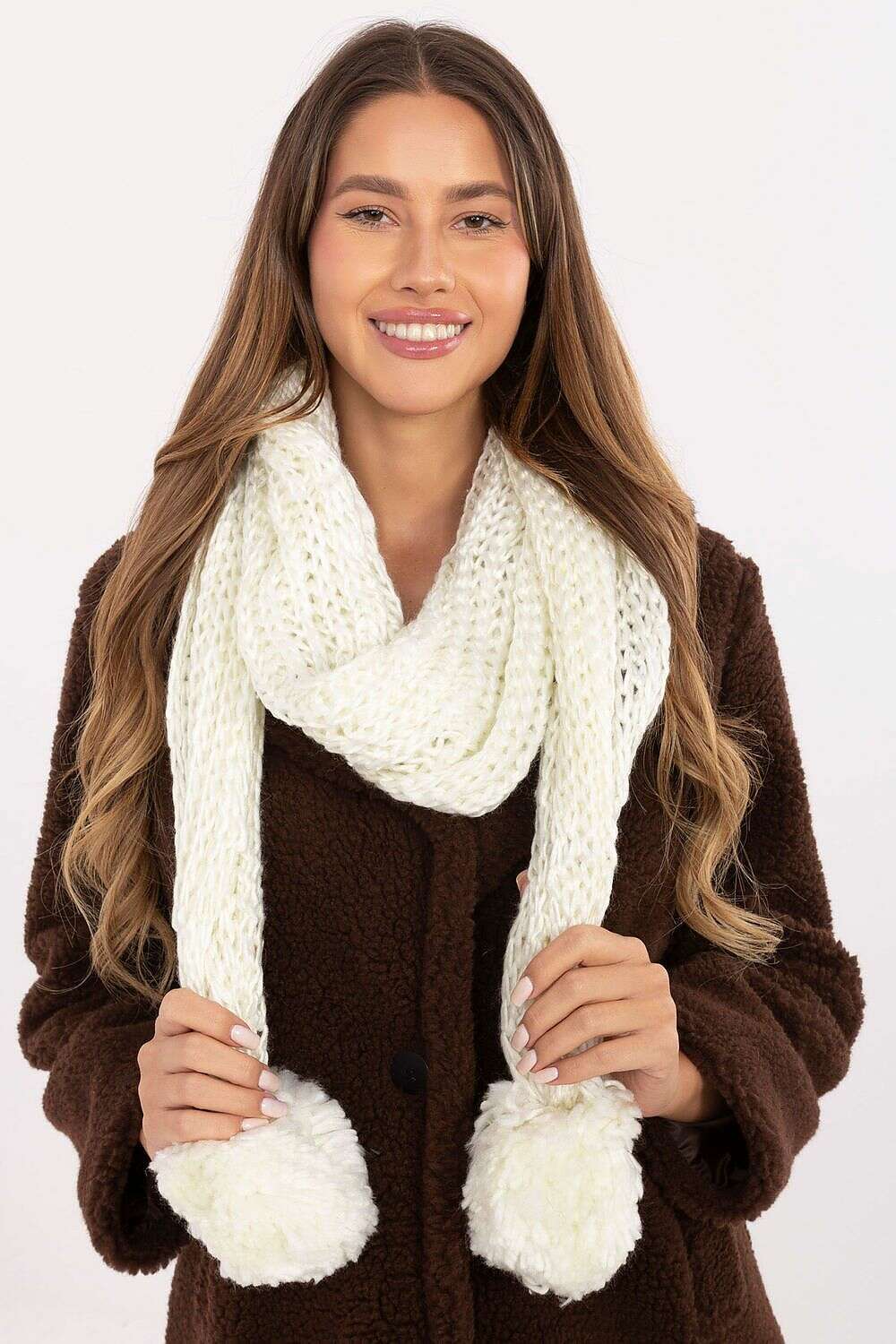 Crafted from 100% acrylic, this scarf offers a smooth, plush texture that feels gentle against the skin while providing outstanding warmth. The long ends are finished with cute pompons, adding a touch of whimsy and fashion-forward charm to your winter wardrobe.