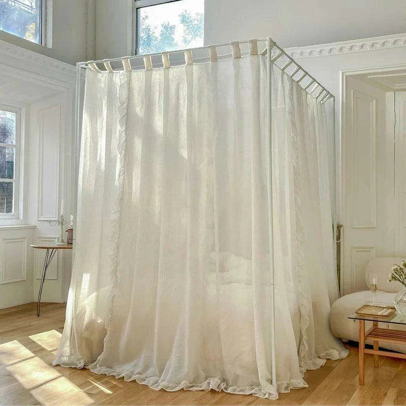 Sheer Linen Canopy Bed Curtains with Ruffled Detailing and Easy Setup