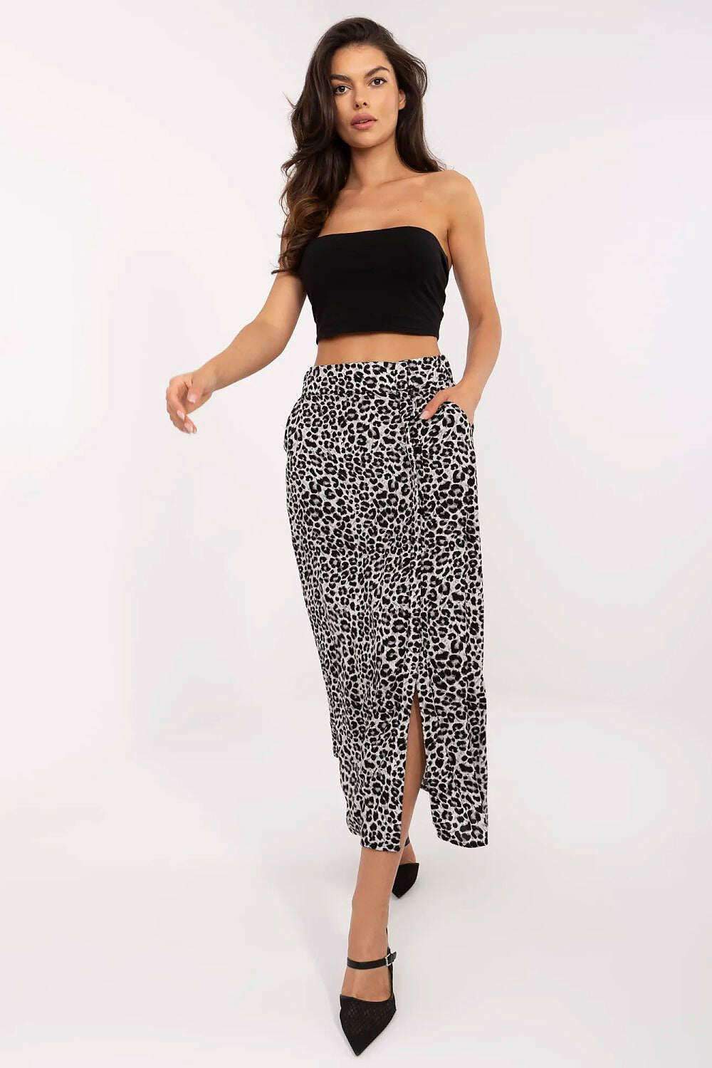 Elegant and comfortable midi skirt is a perfect choice for everyday wear and work. Maintained in a casual style, it will work great both in the office and during daily outings. Made of dominant viscose, a skin-friendly and breathable fabric, it guarantees comfort all day long. The model has practical inset pockets and a button closure covered with a placket, adding elegance and a neat look to the whole. An additional advantage is that the skirt belongs to the collection of ecological clothing, ideal for people who care about the environment and choose conscious fashion. It is a timeless cut that you can easily match with various stylizations, from classic shirts to loose t-shirts.