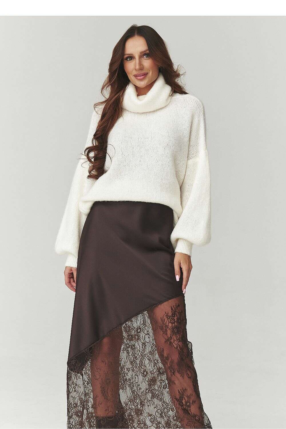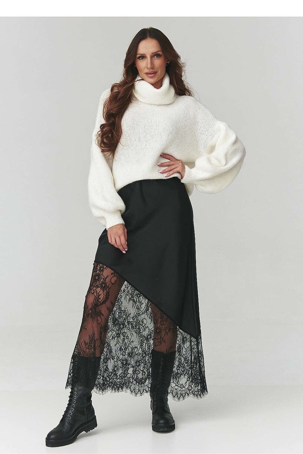 Asymmetrical Lace Insert Skirt – Modern Italian Elegance
