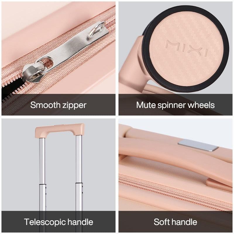 - PVE Rubberized Mute Spinner Wheels: Effortlessly glide through airports with reduced noise and enhanced maneuverability, making travel a breeze and keeping your journey enjoyable.