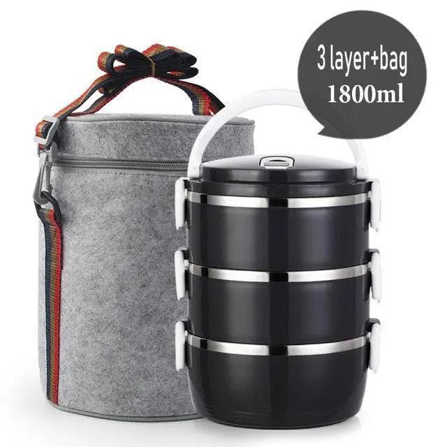 Sleek Black Insulated Stainless Steel Food Carrier - Portable Lunch Box