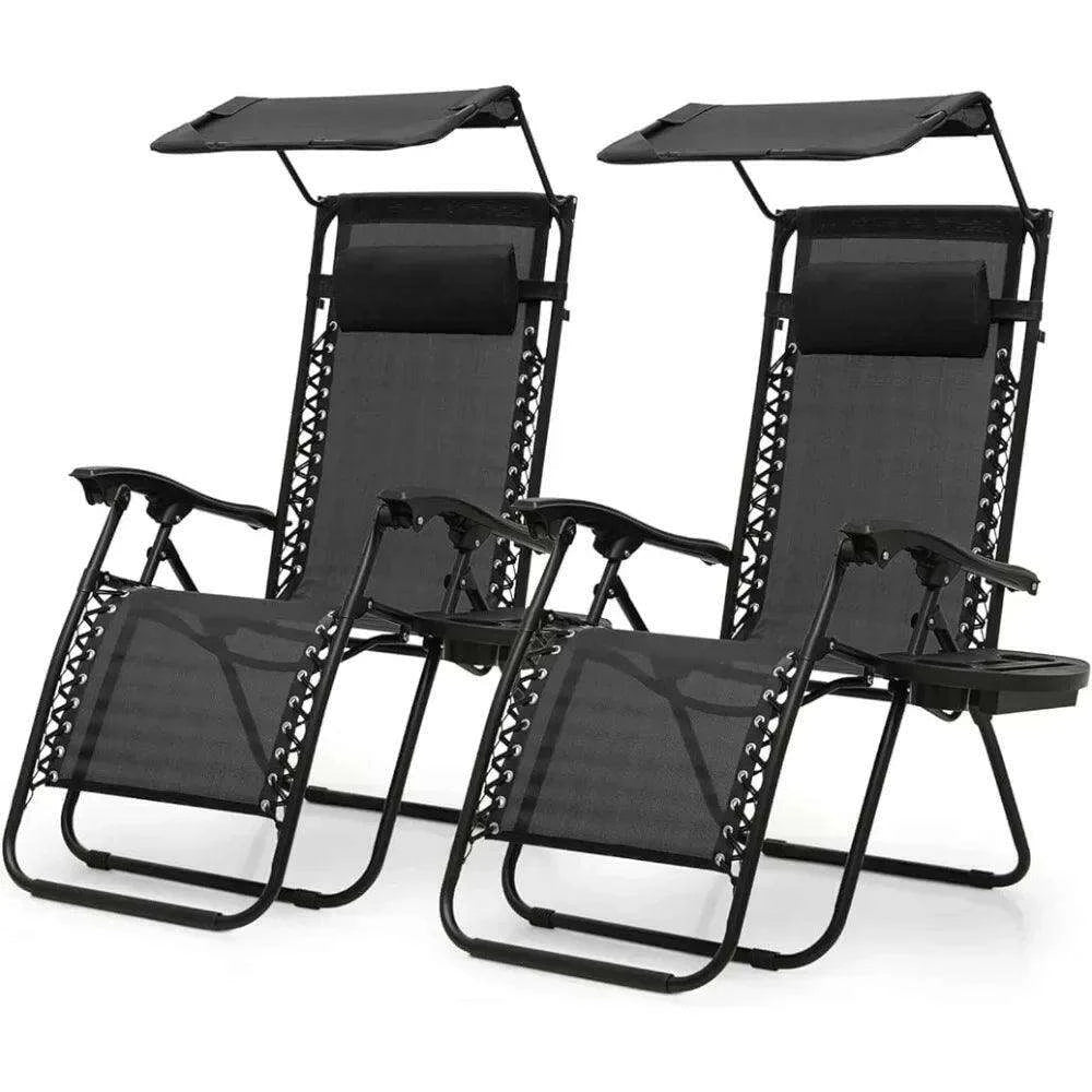 Black Mesh Reclining Lounge Chair with Headrest and Side Tray - Ultimate Outdoor Comfort Seat