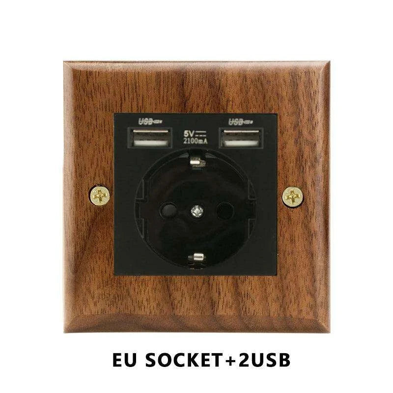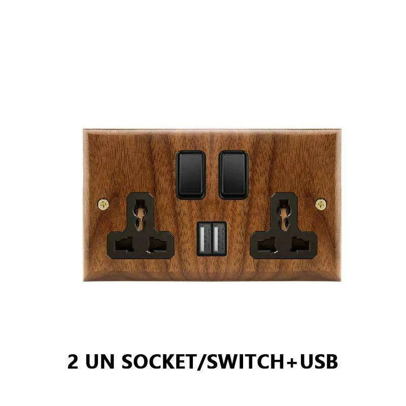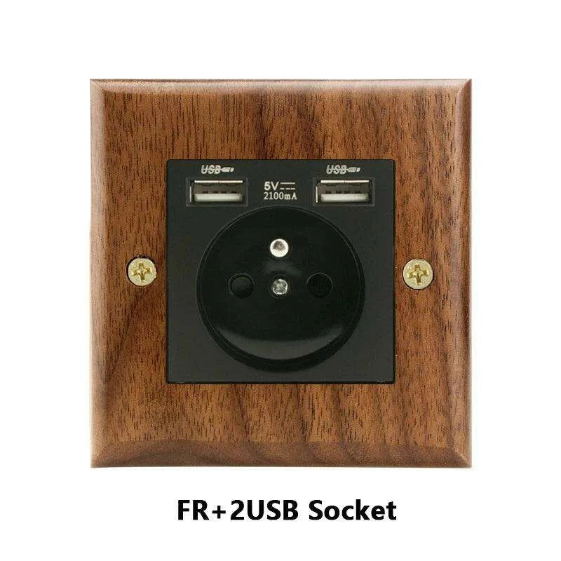 Modern Black Walnut Electrical Panel with USB Charging Ports, Adjustable LED Lighting, and Stylish Toggle Design