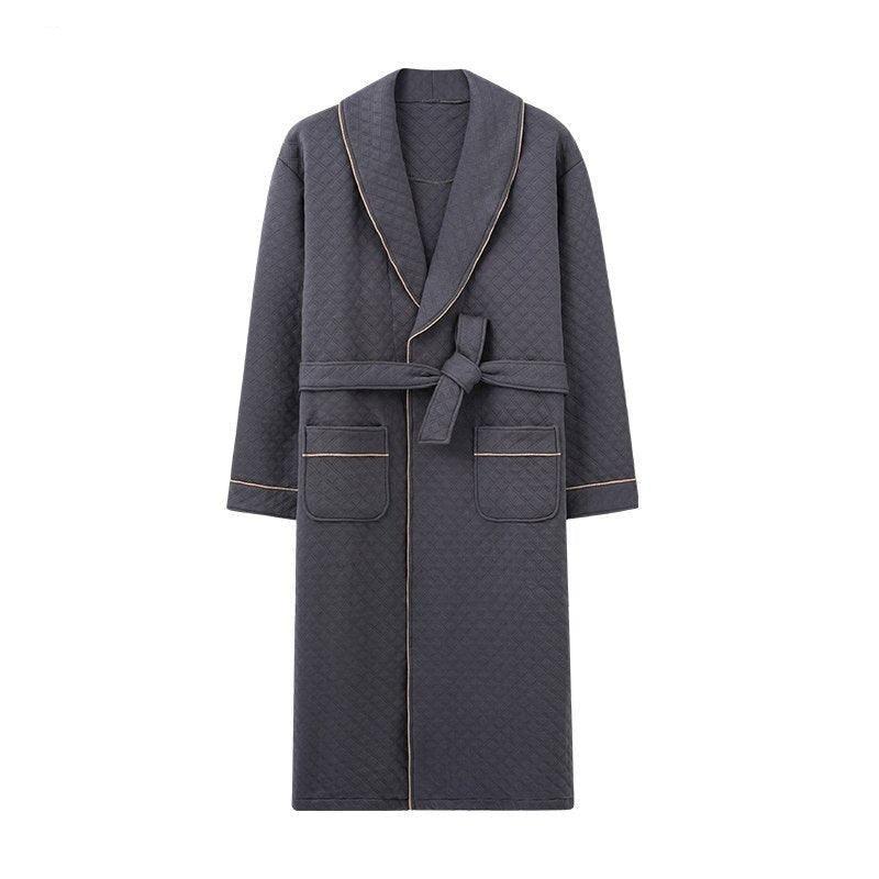 Elegance in Grey: Three-Layer Cotton Men's Bathrobe for Ultimate Comfort