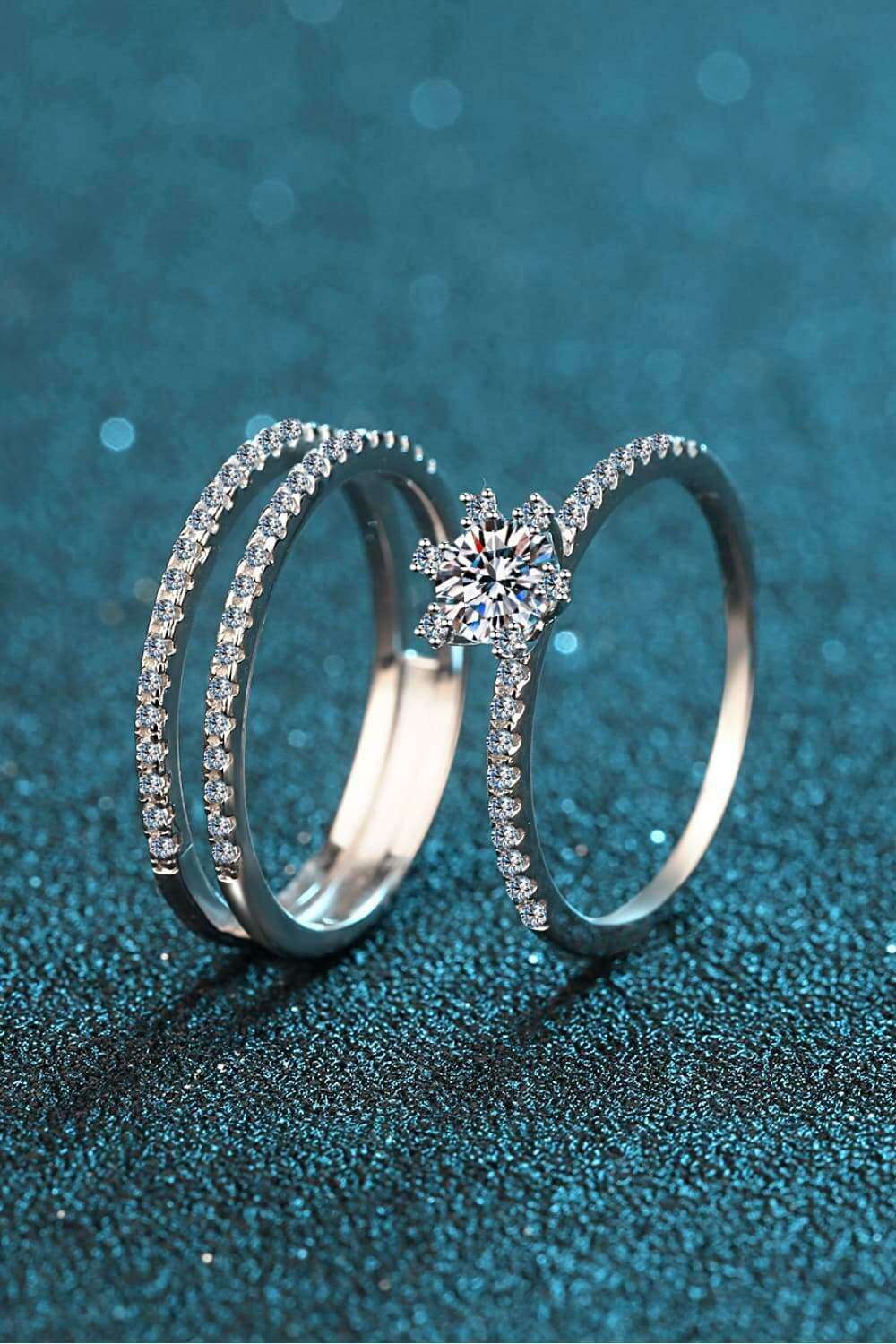 • Sparkling Accents: Enhanced with Moissanite and Zircon stones, this ring set radiates beauty as it catches the light.