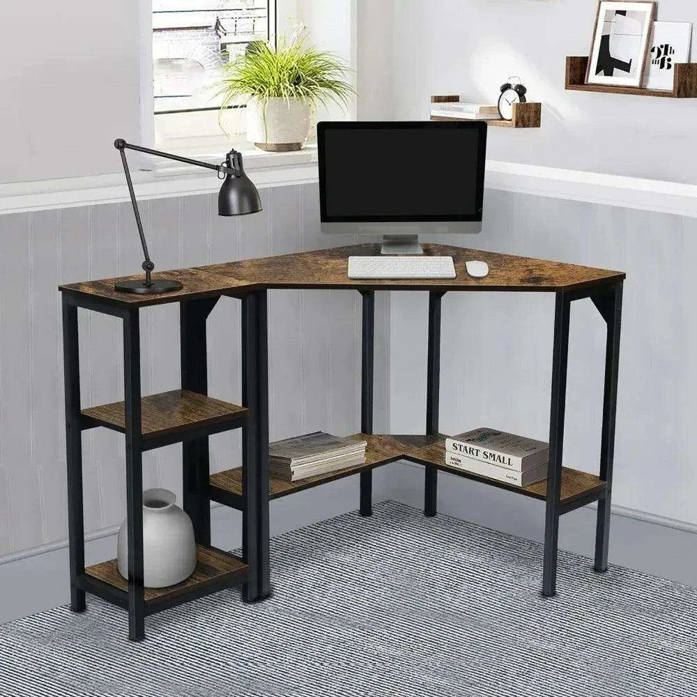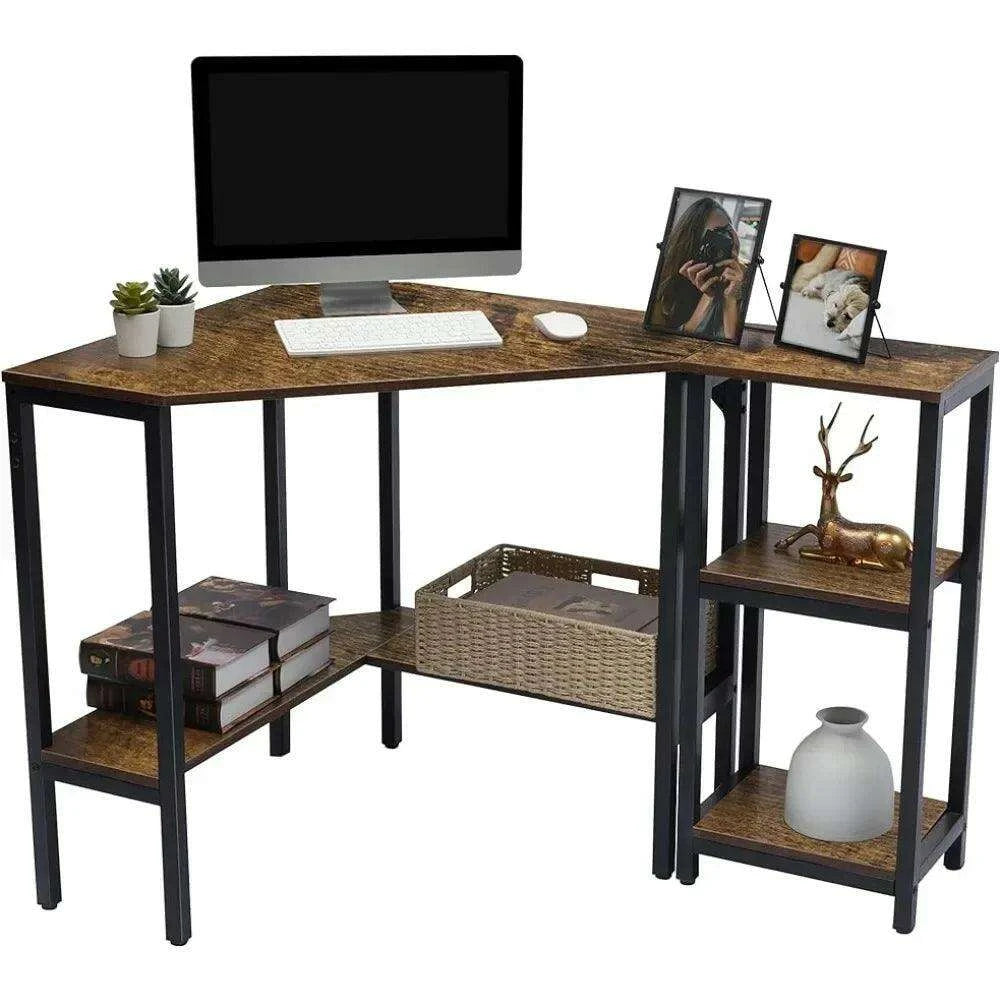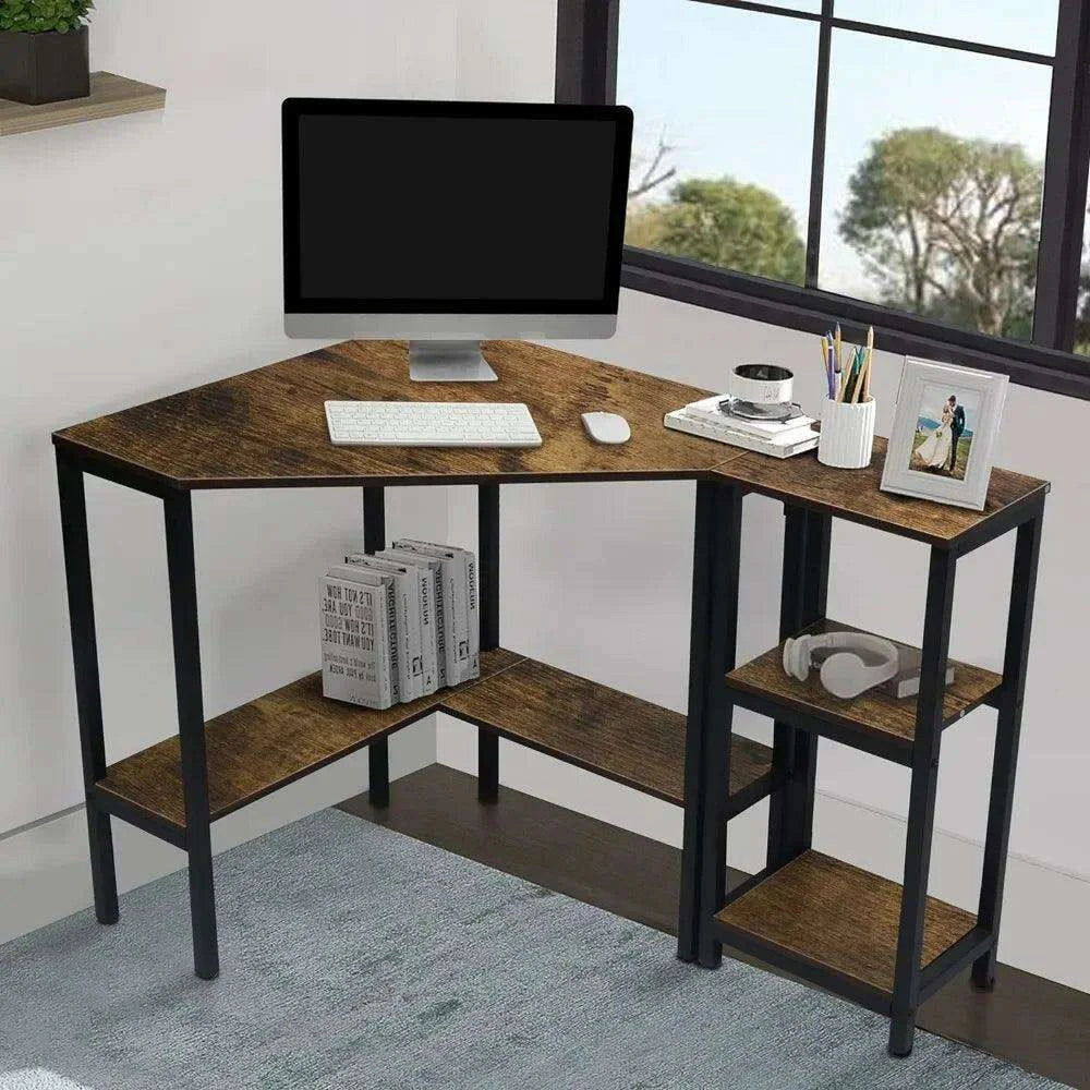 Space-Saving Triangular Corner Desk with Functional Storage and Roomy Workspace - Modern Computer Table