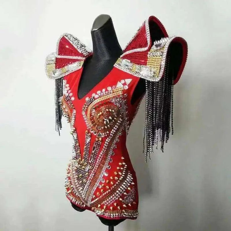- Stand Out: Adorned with dazzling crystals and featuring a striking armor style, this bodysuit is designed to ensure you dominate the stage and leave an unforgettable impression.