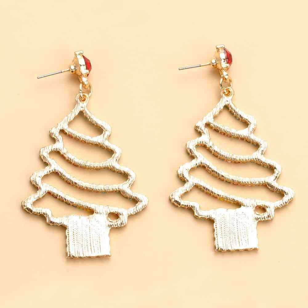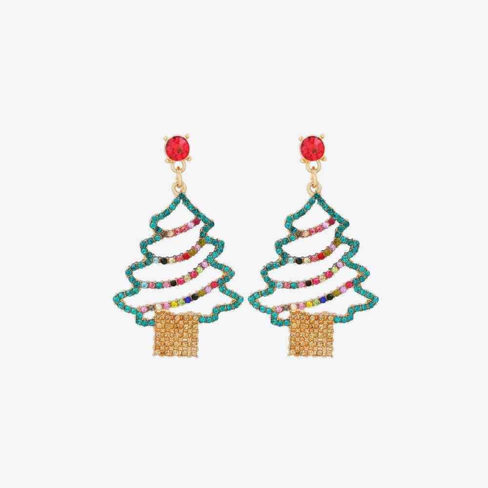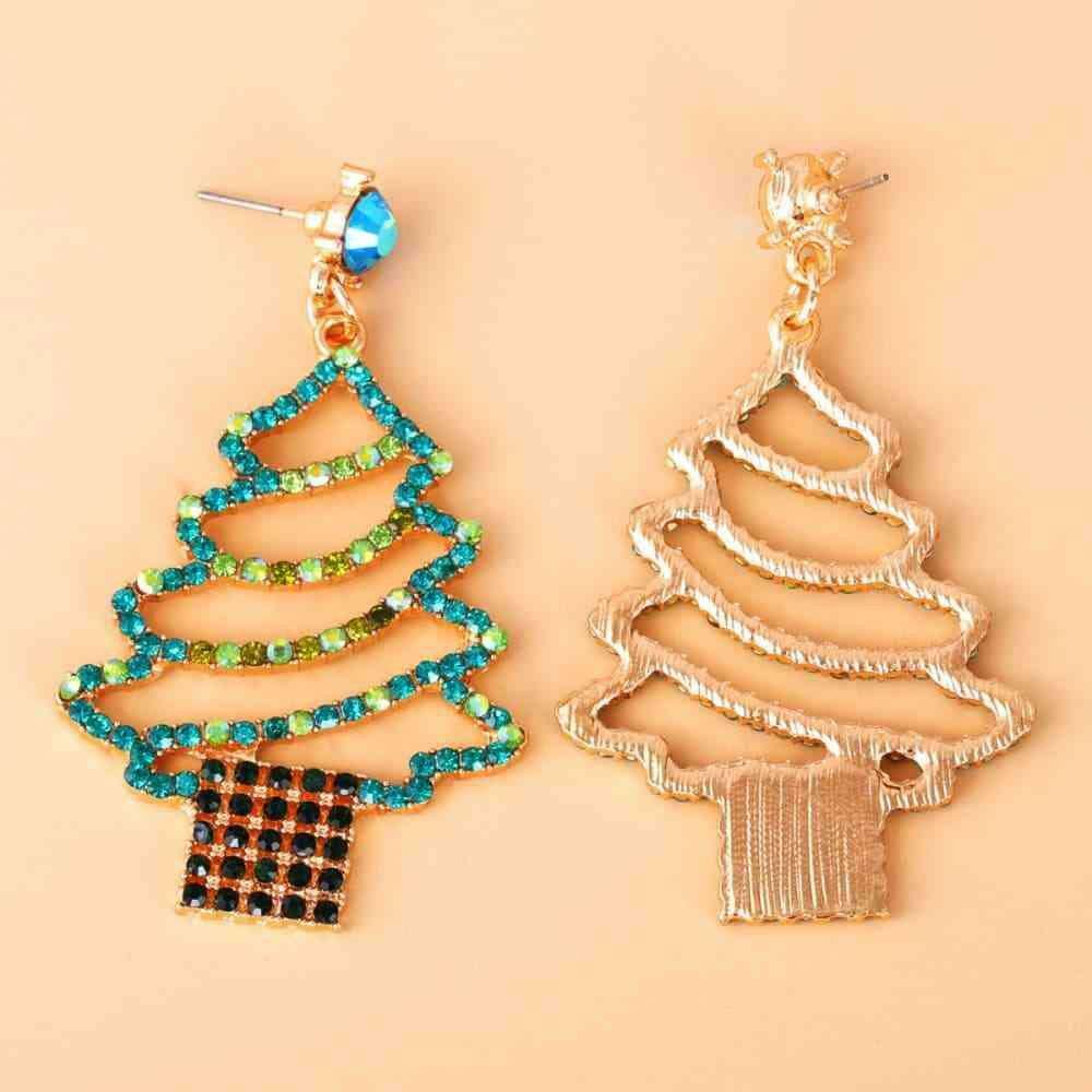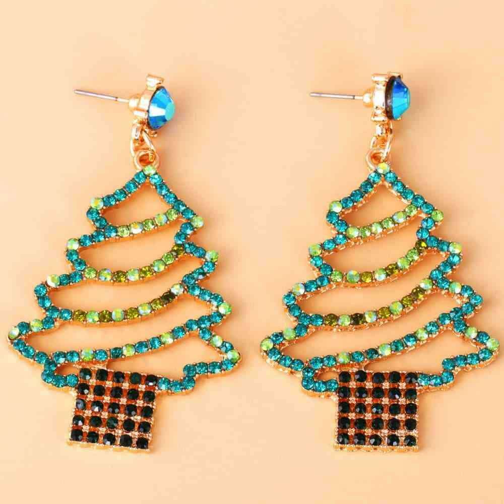 Sparkling Rhinestone Festive Tree Earrings