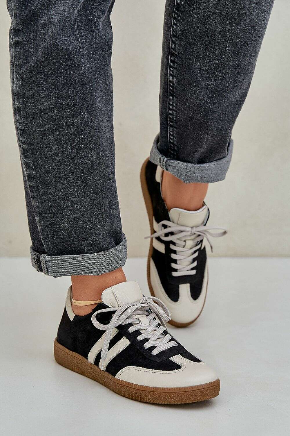 Stylish women's sneakers made of natural leather. They are the perfect combination of style and comfort. Low, lace-up shoes go well with both casual and more elegant outfits. The soft insole ensures comfort throughout the day. Perfect for city walks, shopping or meetings with friends, they are a fashionable and practical addition to any wardrobe.