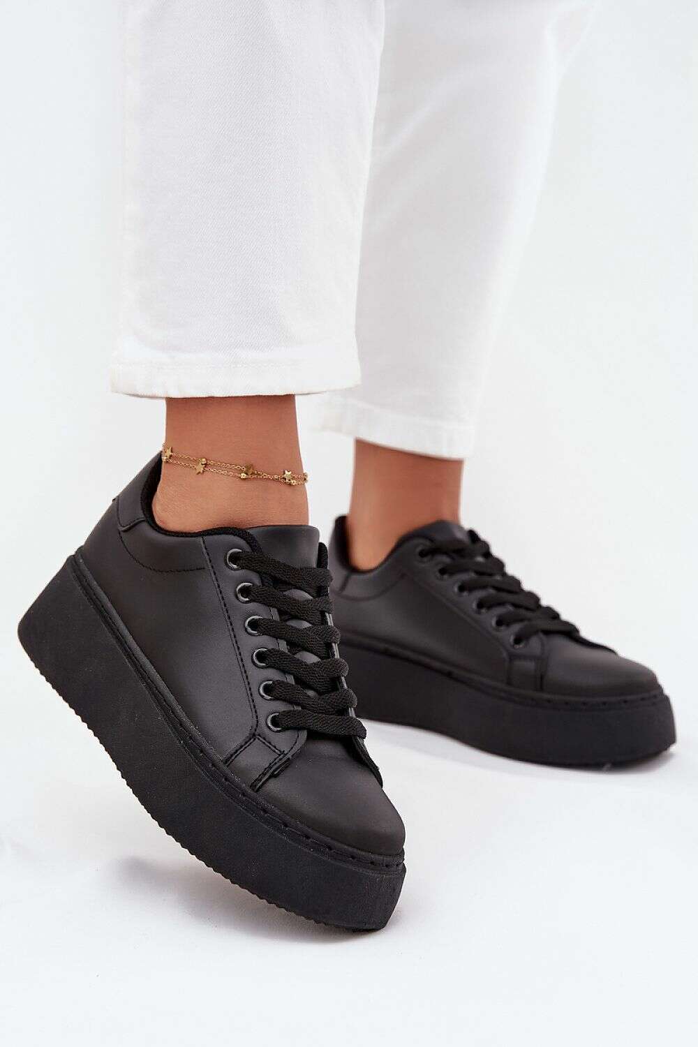 Women's sneakers made of eco leather. Set on a platform, they combine a modern look with comfort. The foam insole, covered with additional material, provides comfort throughout the day, and the rounded toes add lightness and subtlety. The fashionable and classic design makes the sneakers suitable for many styles, from casual to sporty, perfect for pants, dresses or skirts. This is a versatile choice that will perfectly complement any wardrobe.