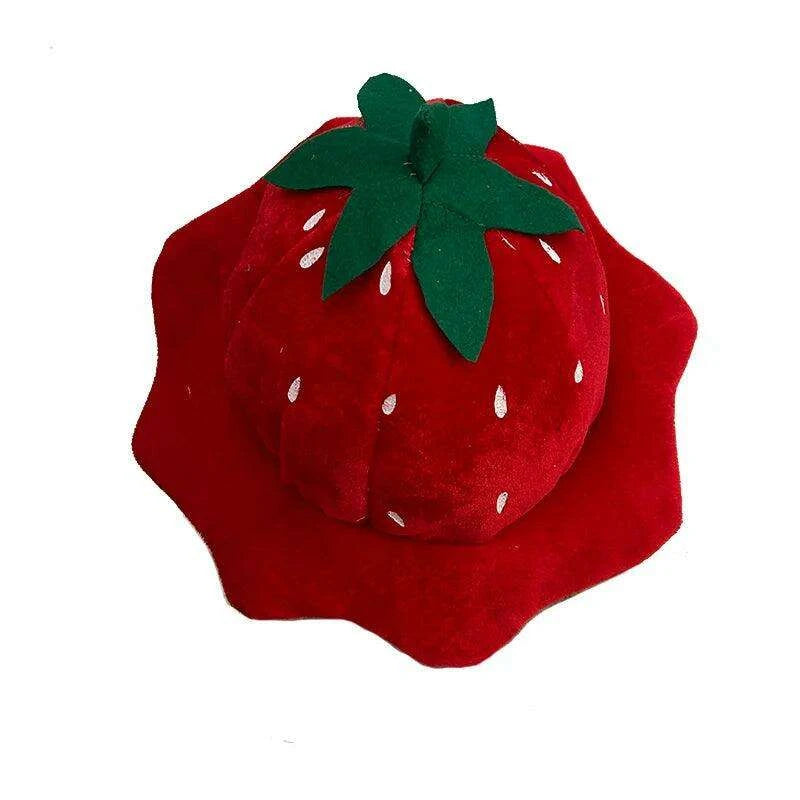 Strawberry Delight Costume Beret Hat for Women - Fun Plush Bonnet for Halloween, Parties, and Costumes