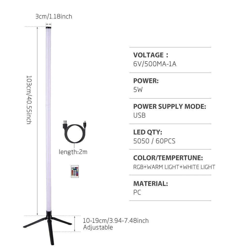 Elegant 103cm Smart RGB LED Floor Lamp with Versatile Control Options - Modern Aesthetic